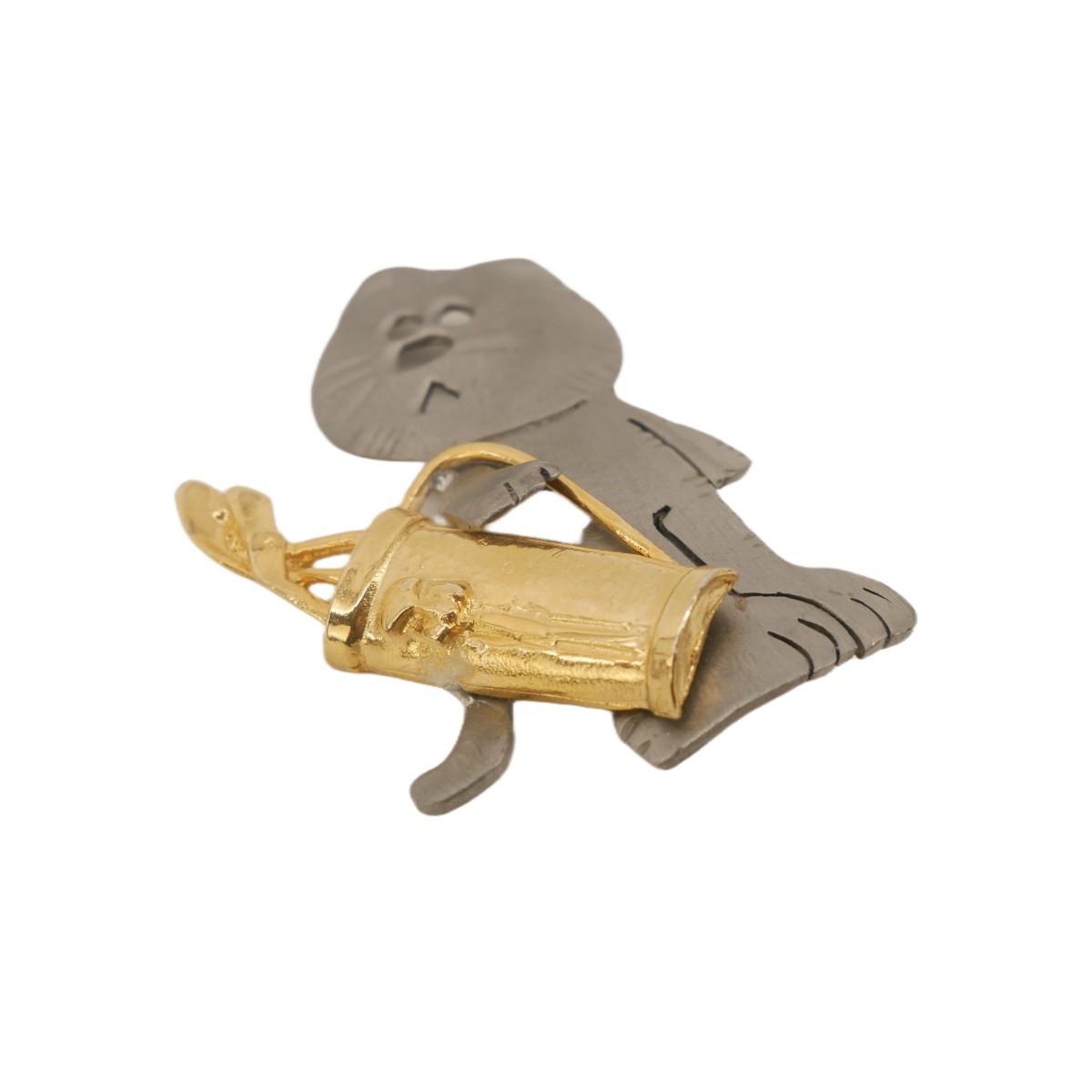 Three animal pin brooches. One butterfly, one cat with gold plated golfing bag marked Ultra Craft and one Noah's Arc pin (some missing rhinestones).