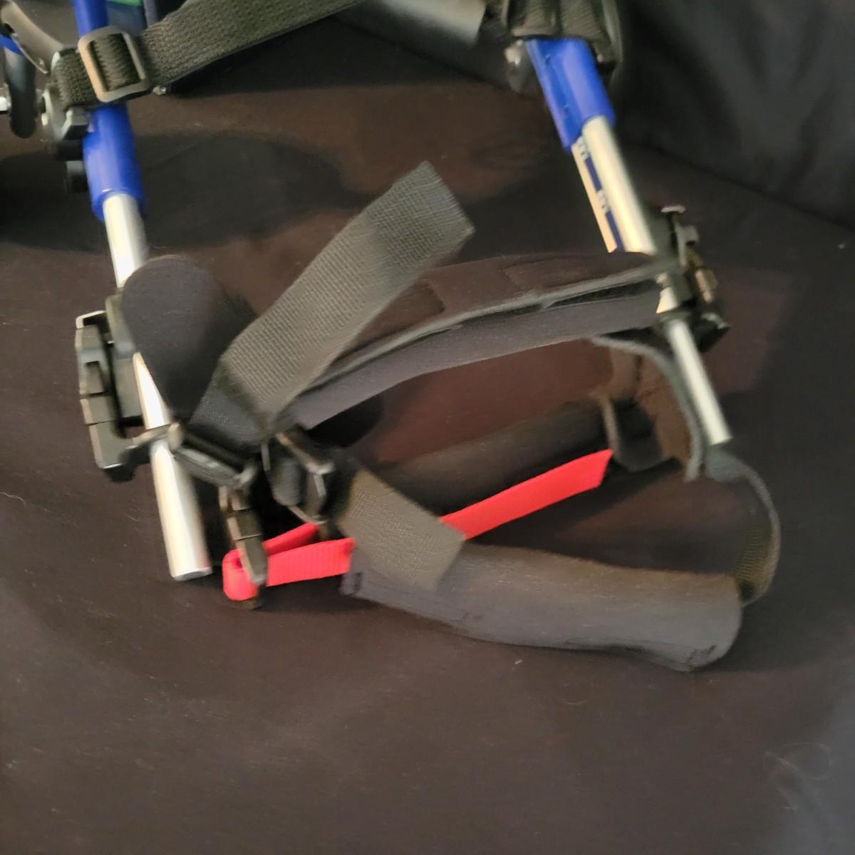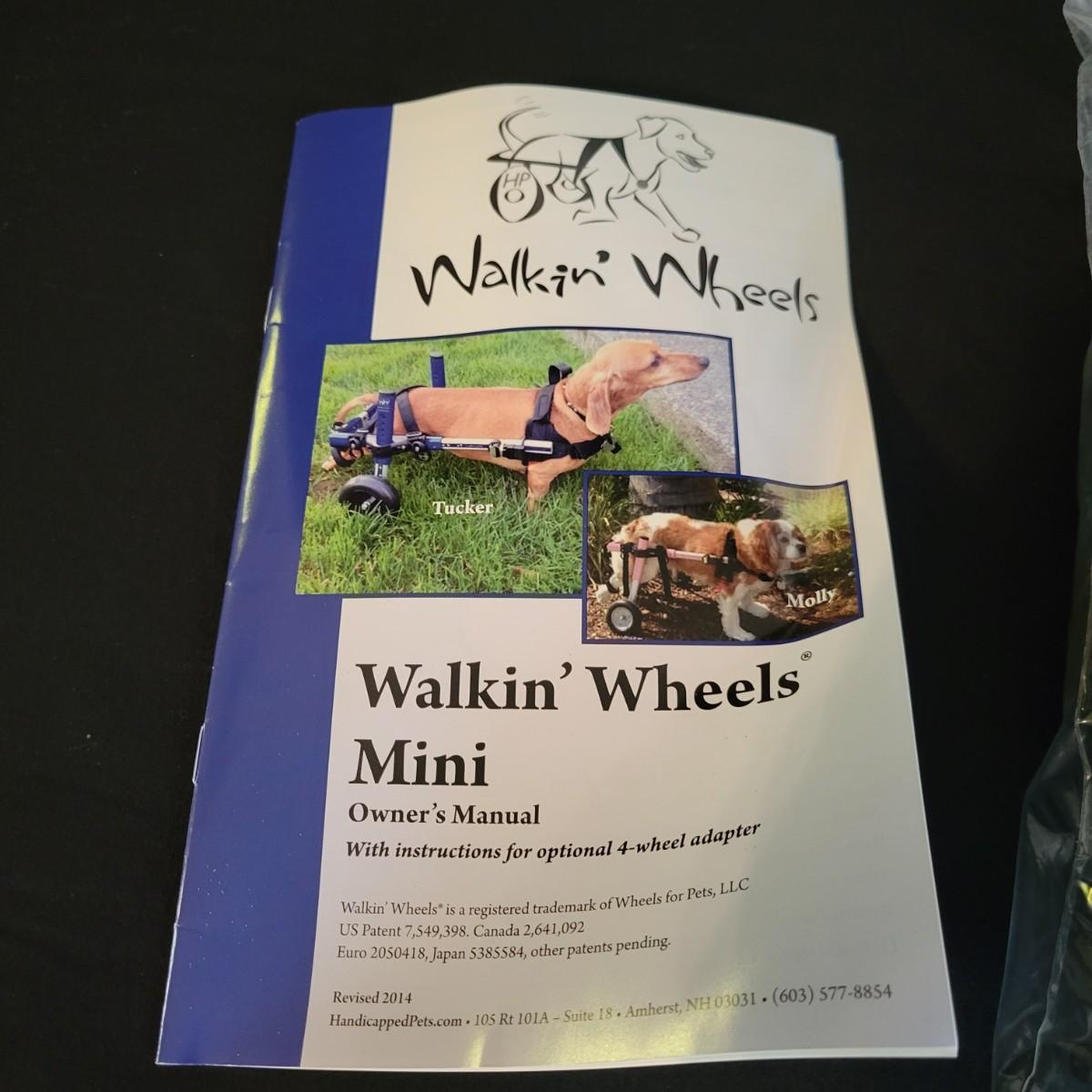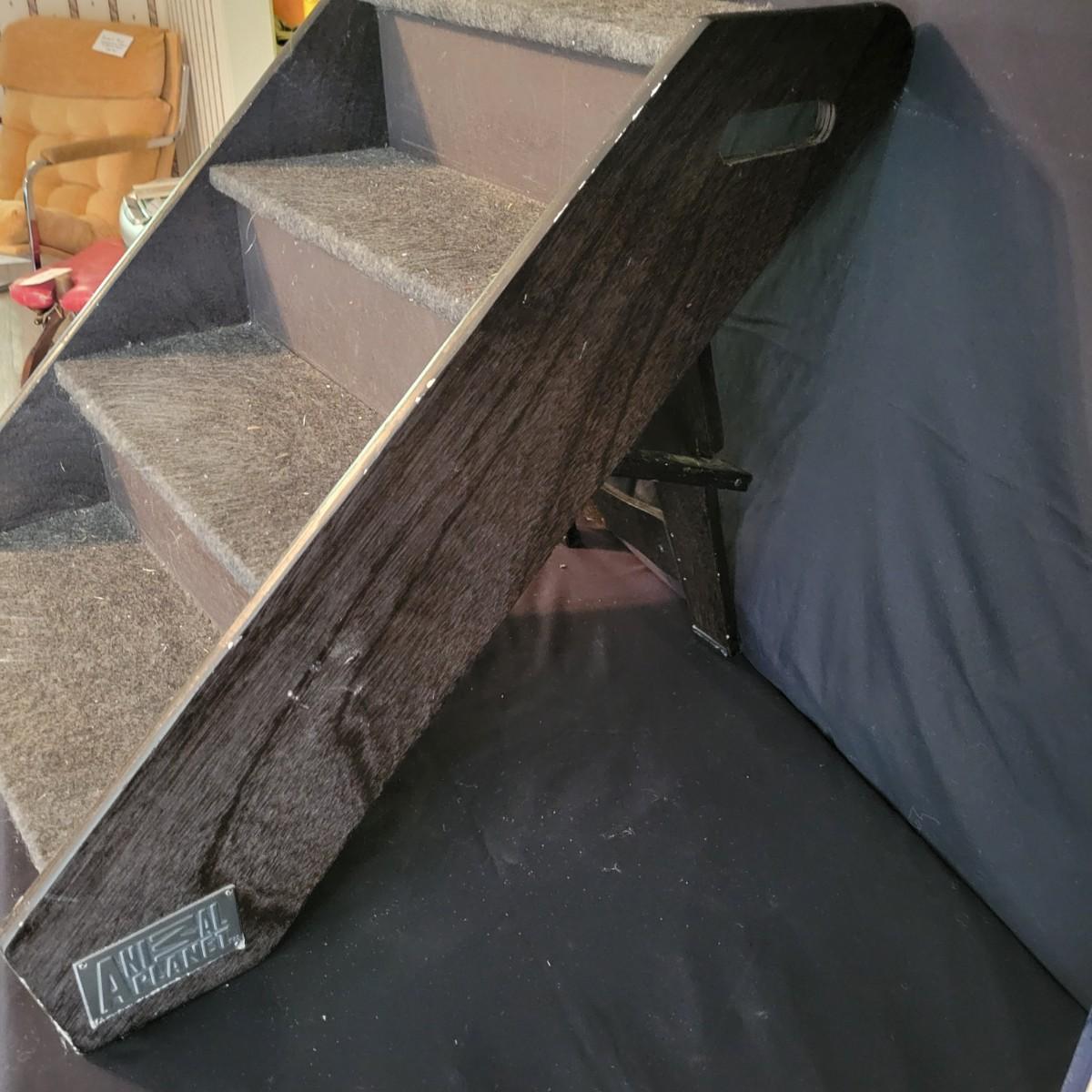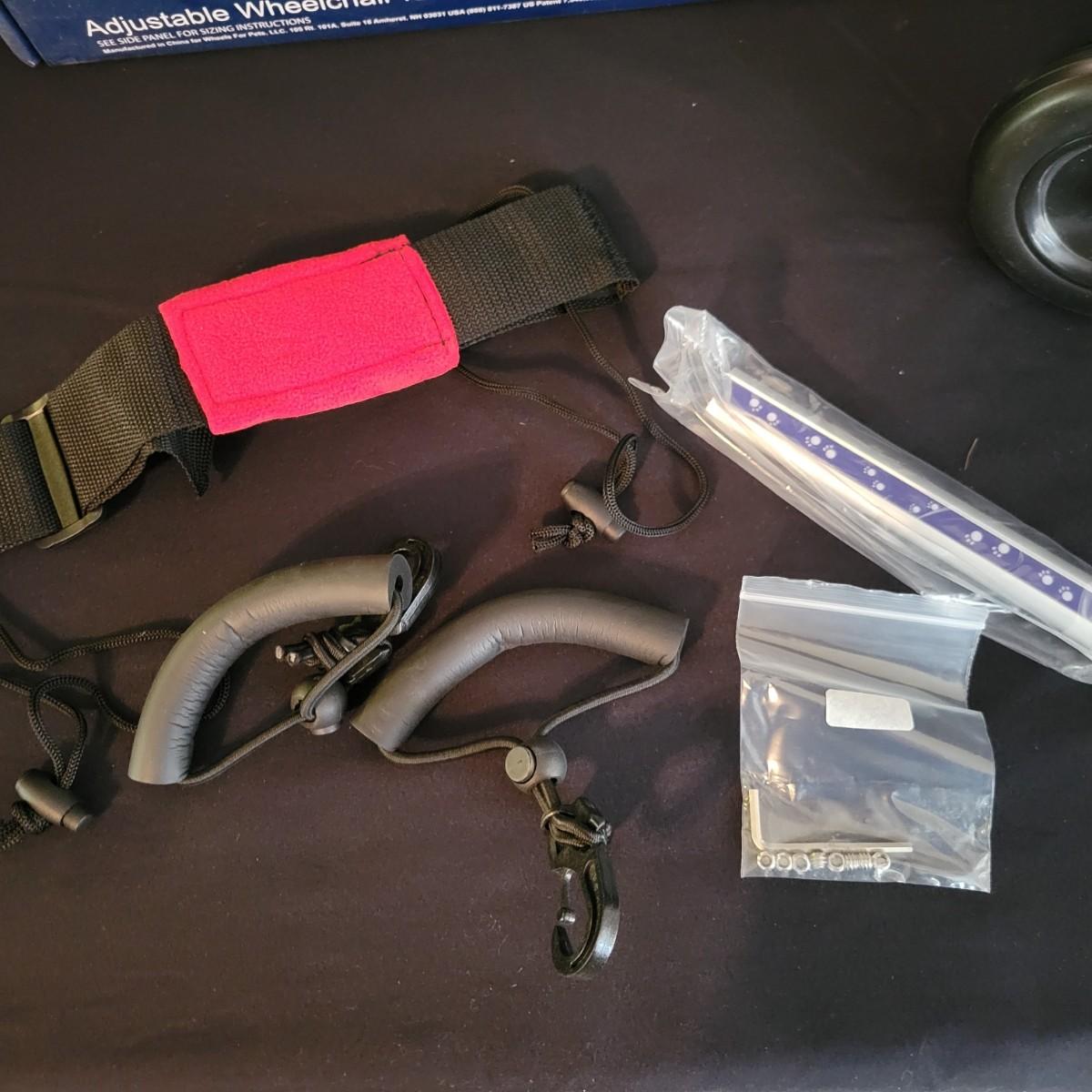 An Animal Planet Pet staircase that collapses for convenient storage. It measures approximately 24" x 15" x 20"H. Also included is a Walkin Wheels adjustable pet wheelchair for pets ranging from 8 to 25lbs. It has adjustable width, height and length. It includes its original packaging and additional pieces. Local pickup only