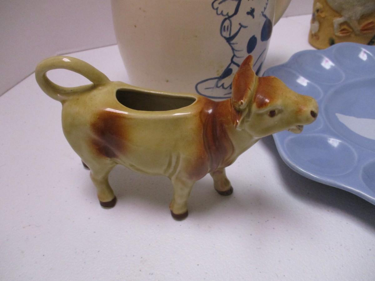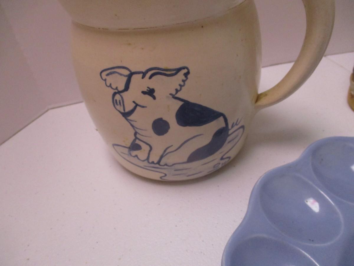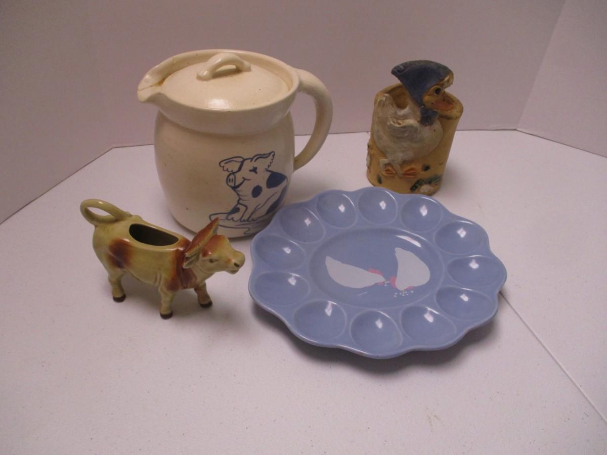 Animal Pottery & Ceramic Dishes Auntie Em Egg Plate Cow Creamer Folk Art Crock With Lid & Pig (K)