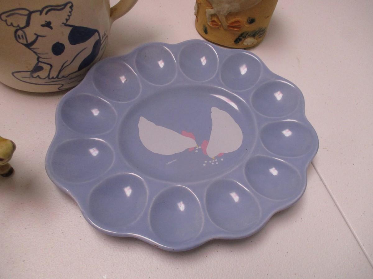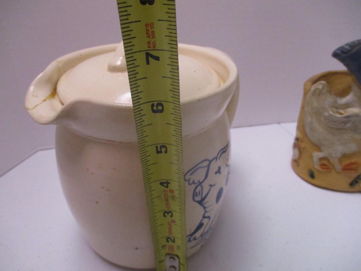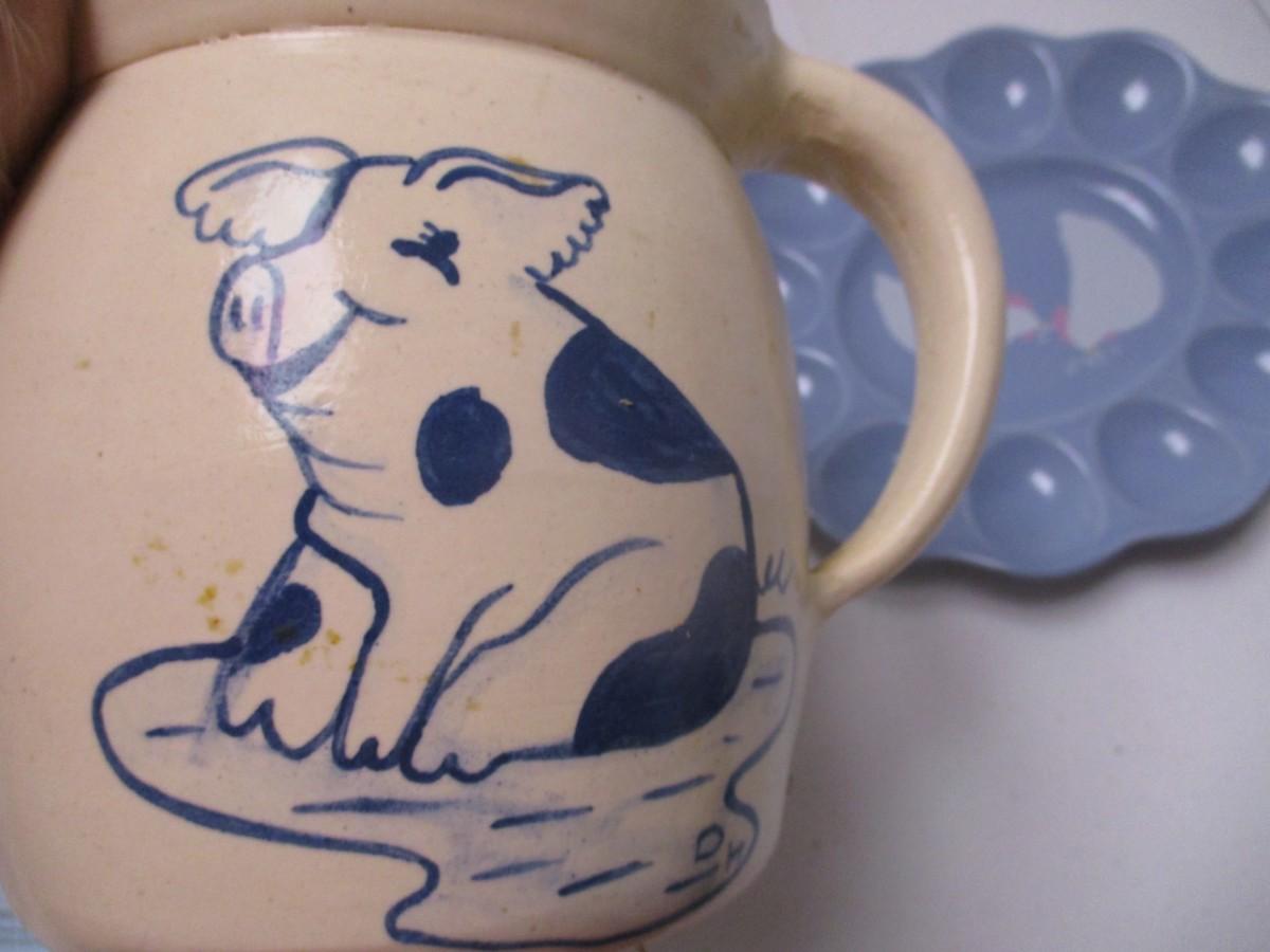 Animal Pottery & Ceramic Dishes Auntie Em Egg Plate Cow Creamer Folk Art Crock With Lid & Pig (K)