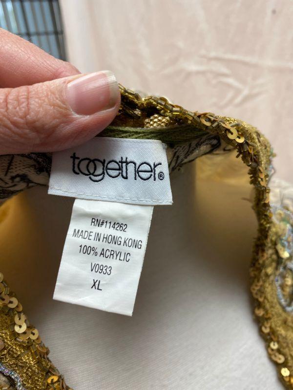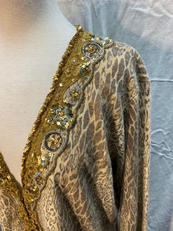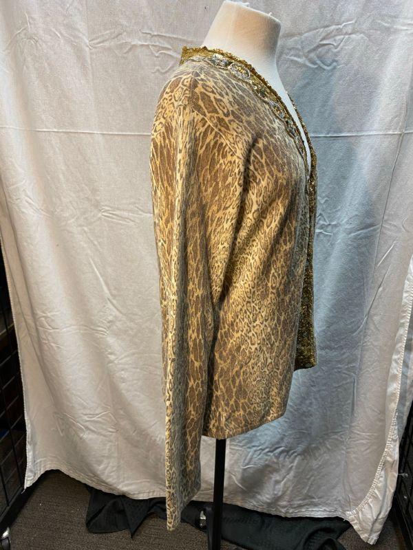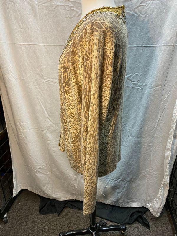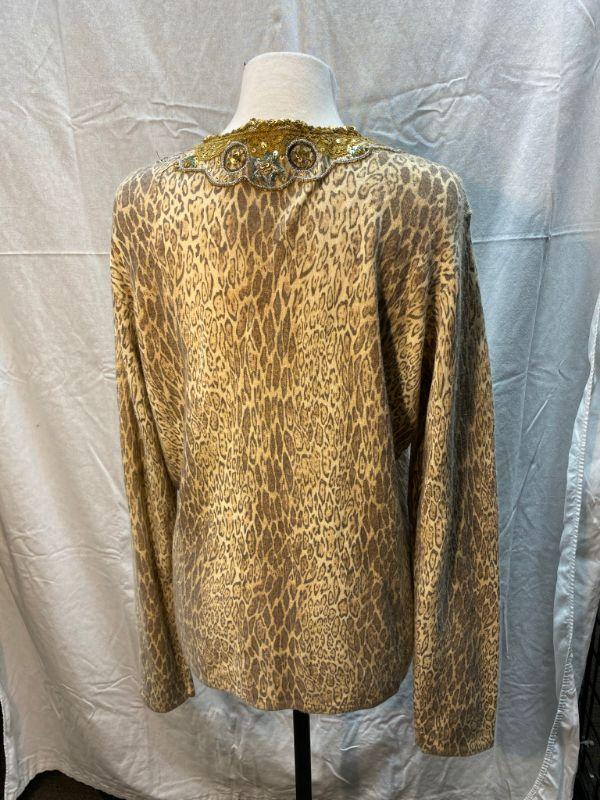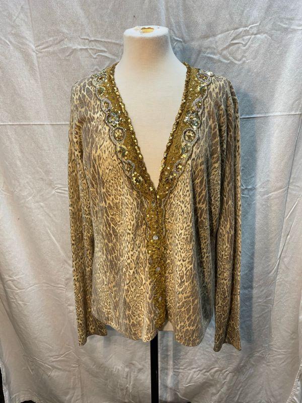 Animal print top by Together. Button front with sequin and bead embellishment along the edge. Size XL. Good condition.