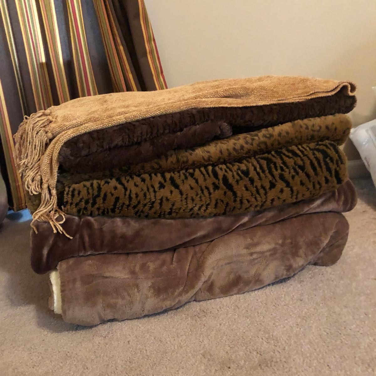 Super soft blankets and throws. The only blanket is the plain, light brown one in the last picture.