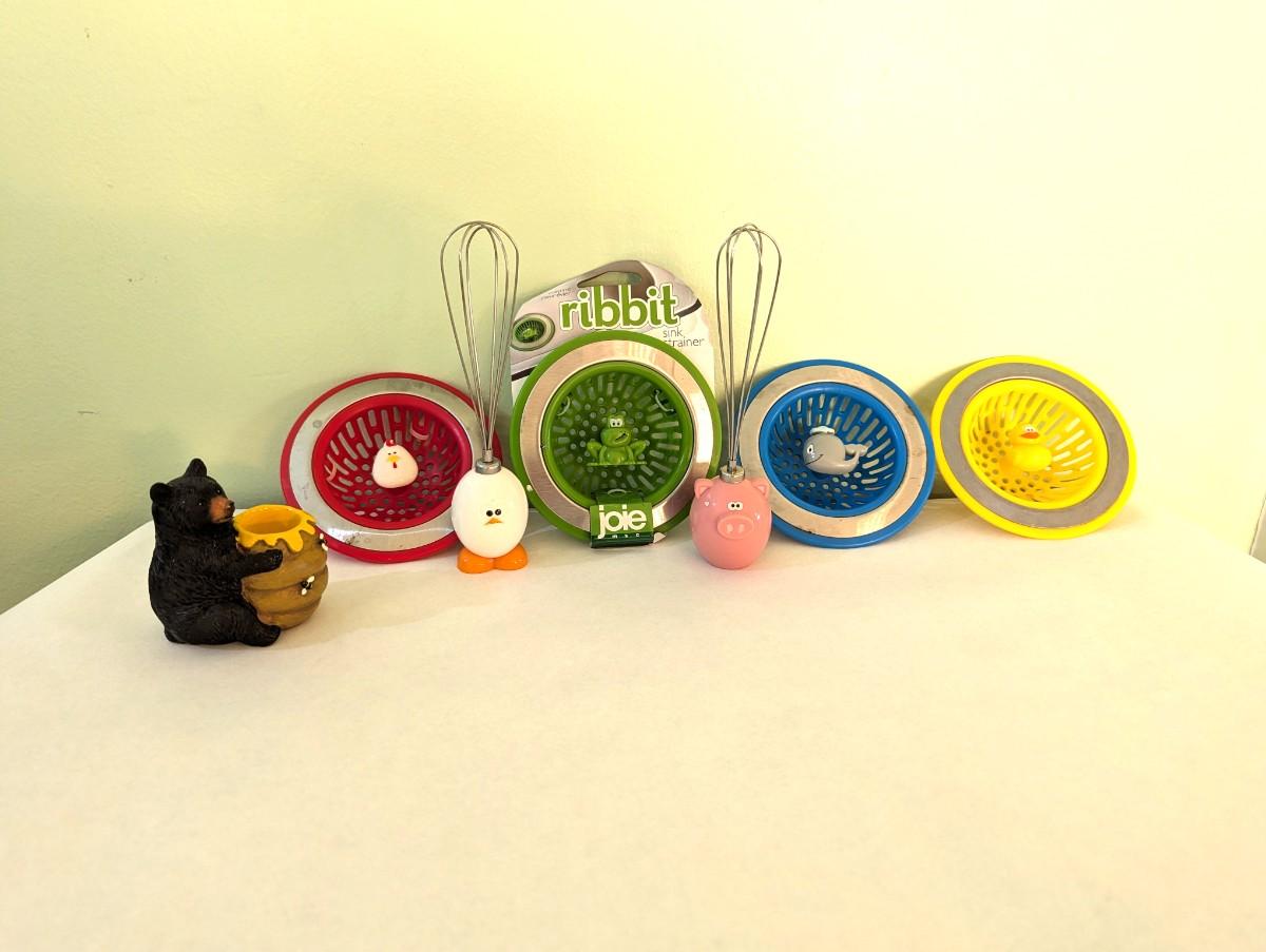 Collection of Whimsical Animal Themed Sink Strainers & Hand Whisks (LR)
