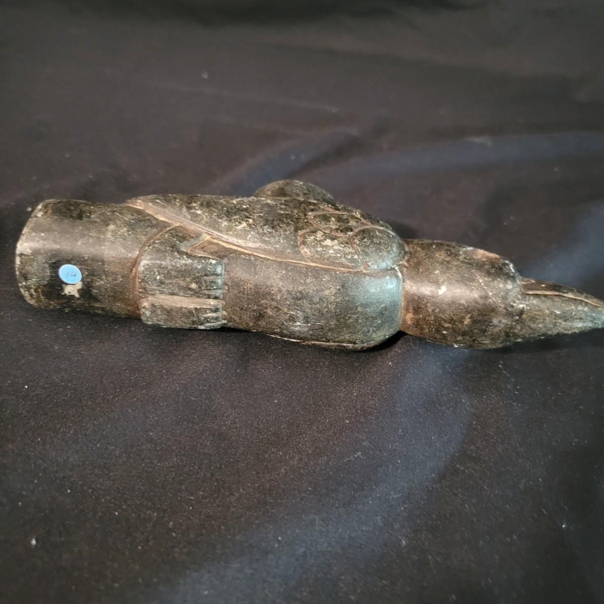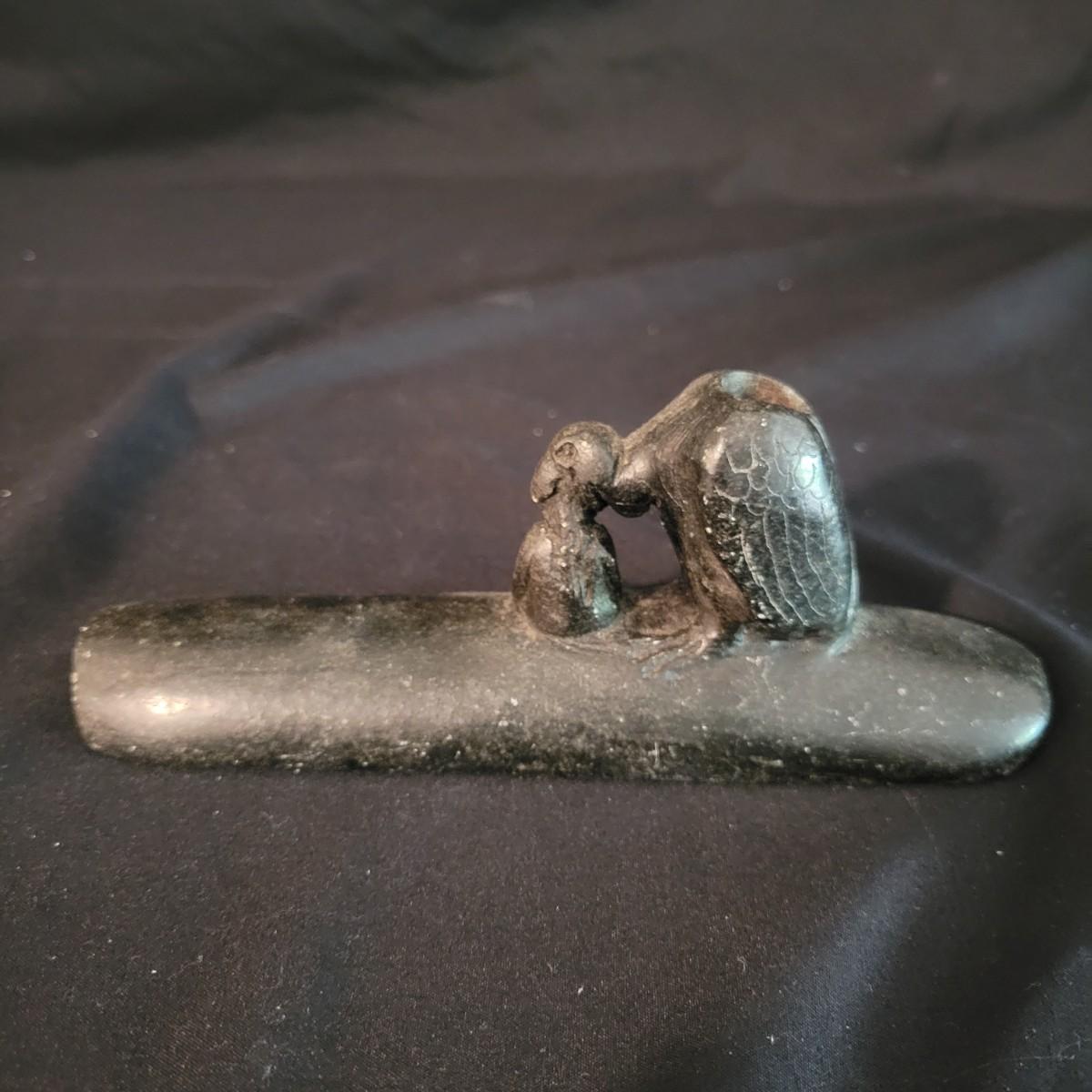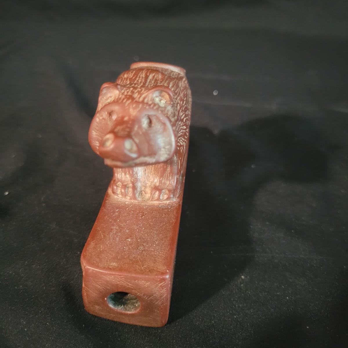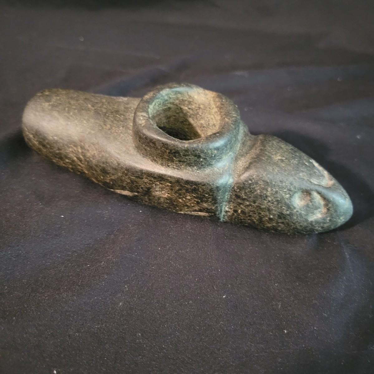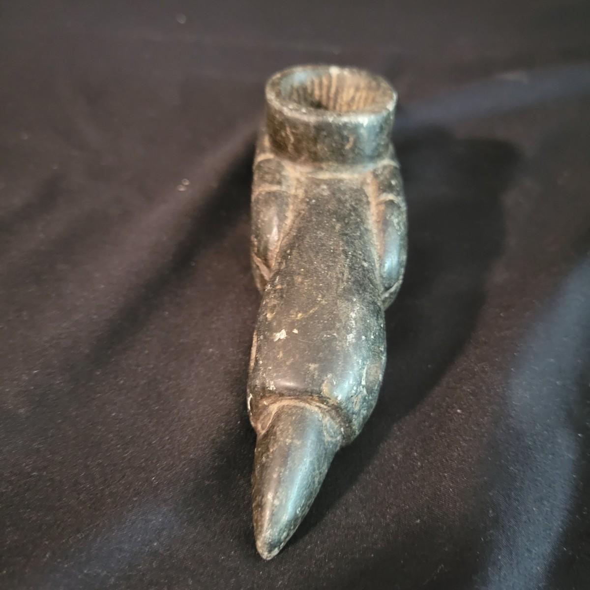 A collection of stone pipes carved with animal styling. There are five pipes in the lot including a bear, vulture and other animal representations. The eagle pipe measures approximately 7" x 2" x 2.5"H. Shipping available.