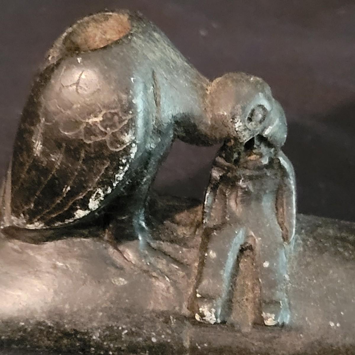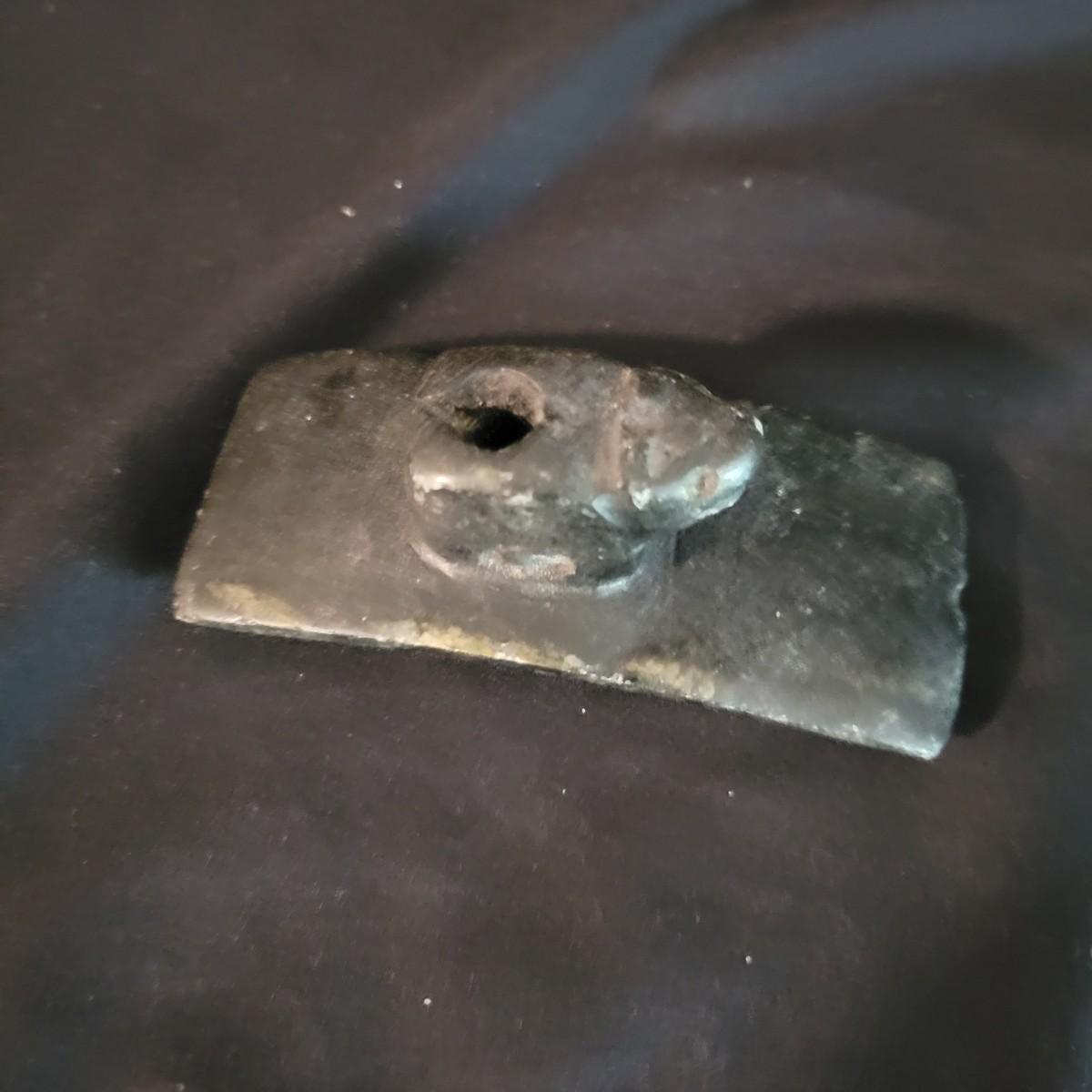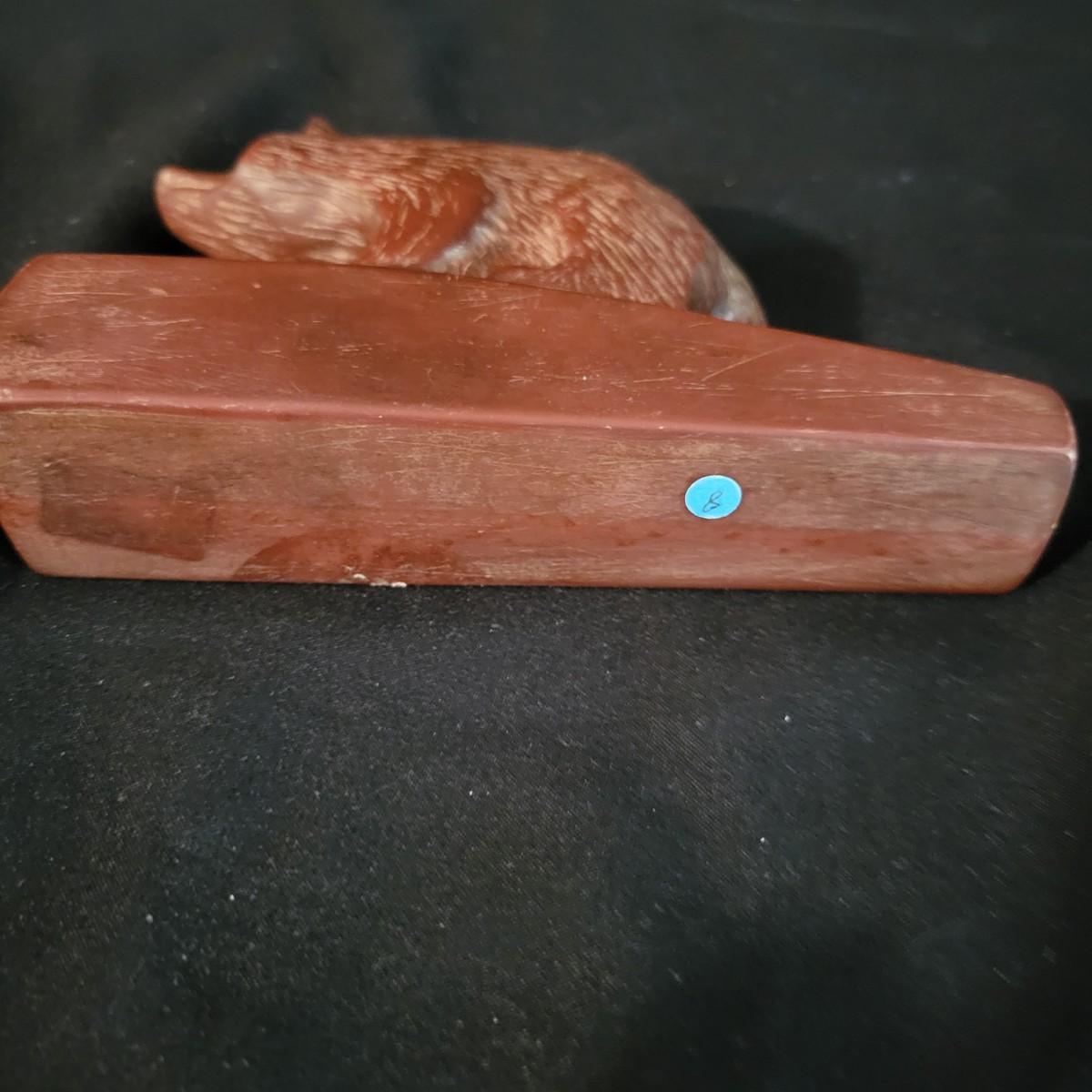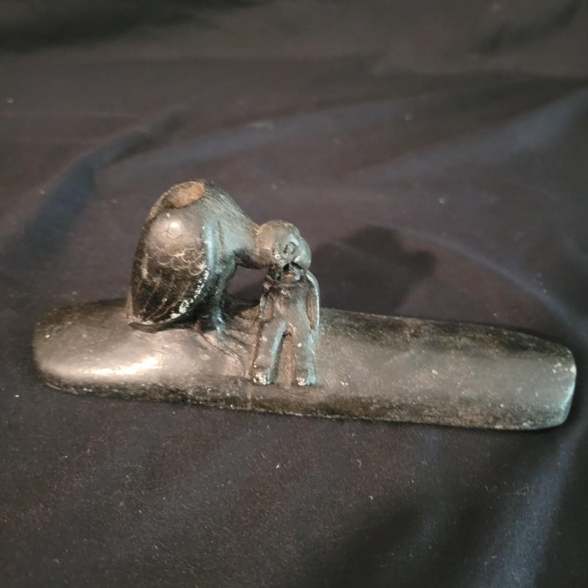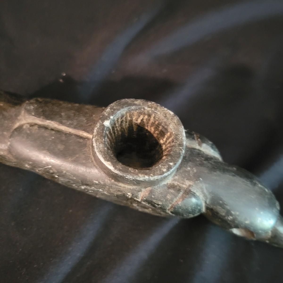 A collection of stone pipes carved with animal styling. There are five pipes in the lot including a bear, vulture and other animal representations. The eagle pipe measures approximately 7" x 2" x 2.5"H. Shipping available.