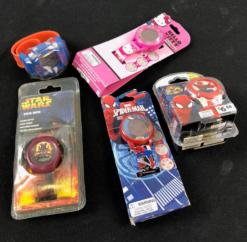 Here is a lot of children's watches with animated characters..Hello Kitty..Spiderman...