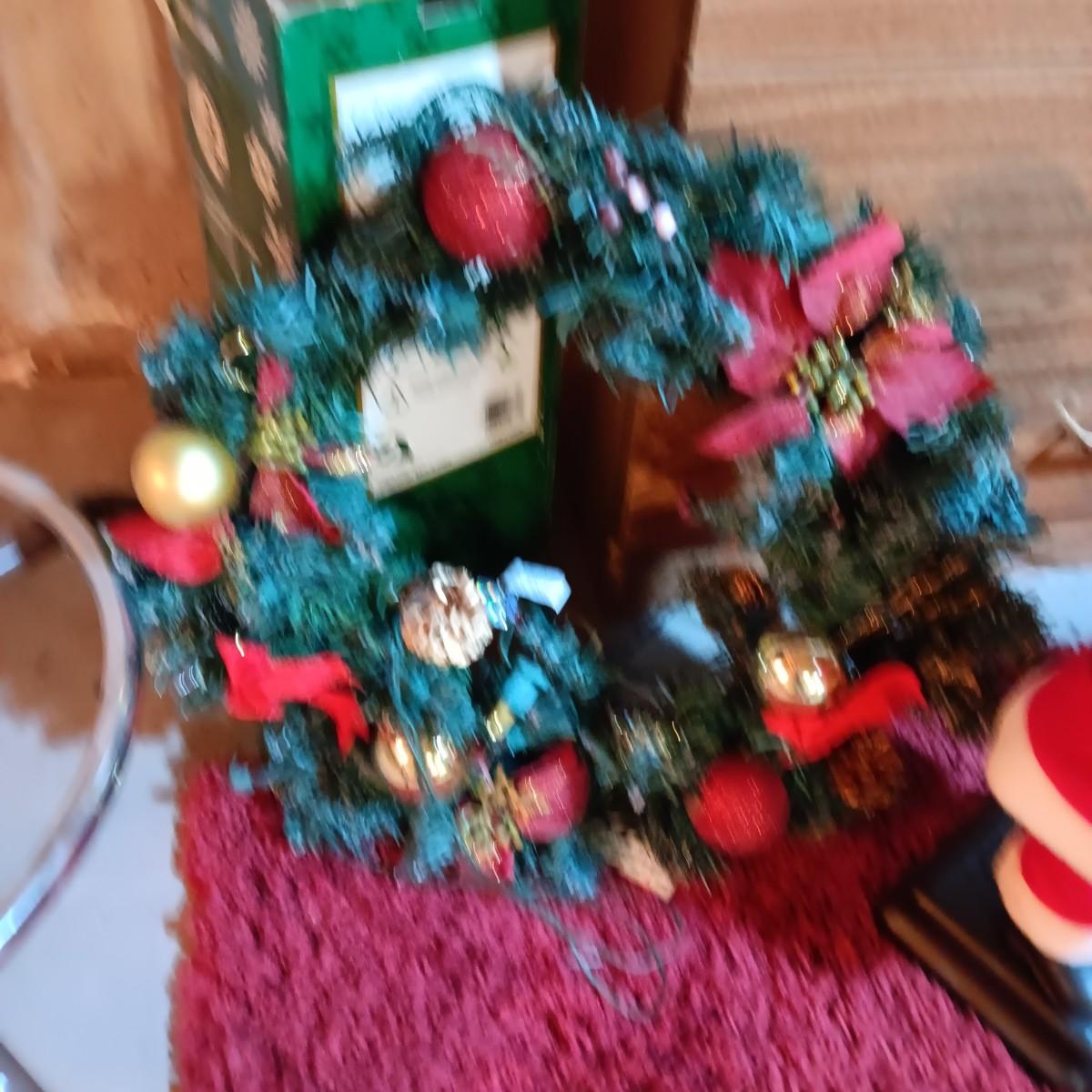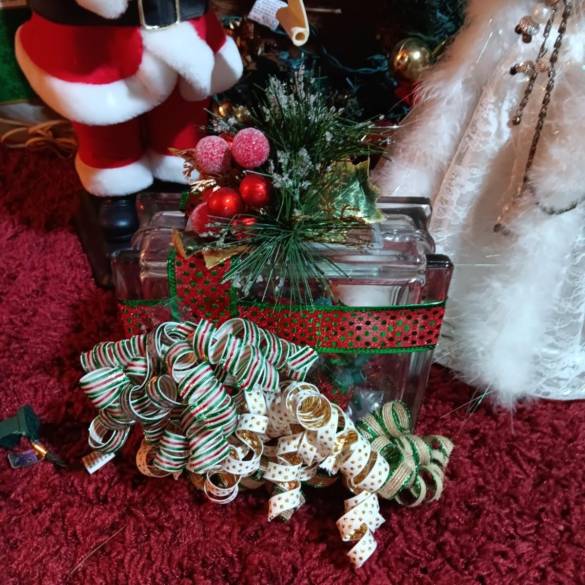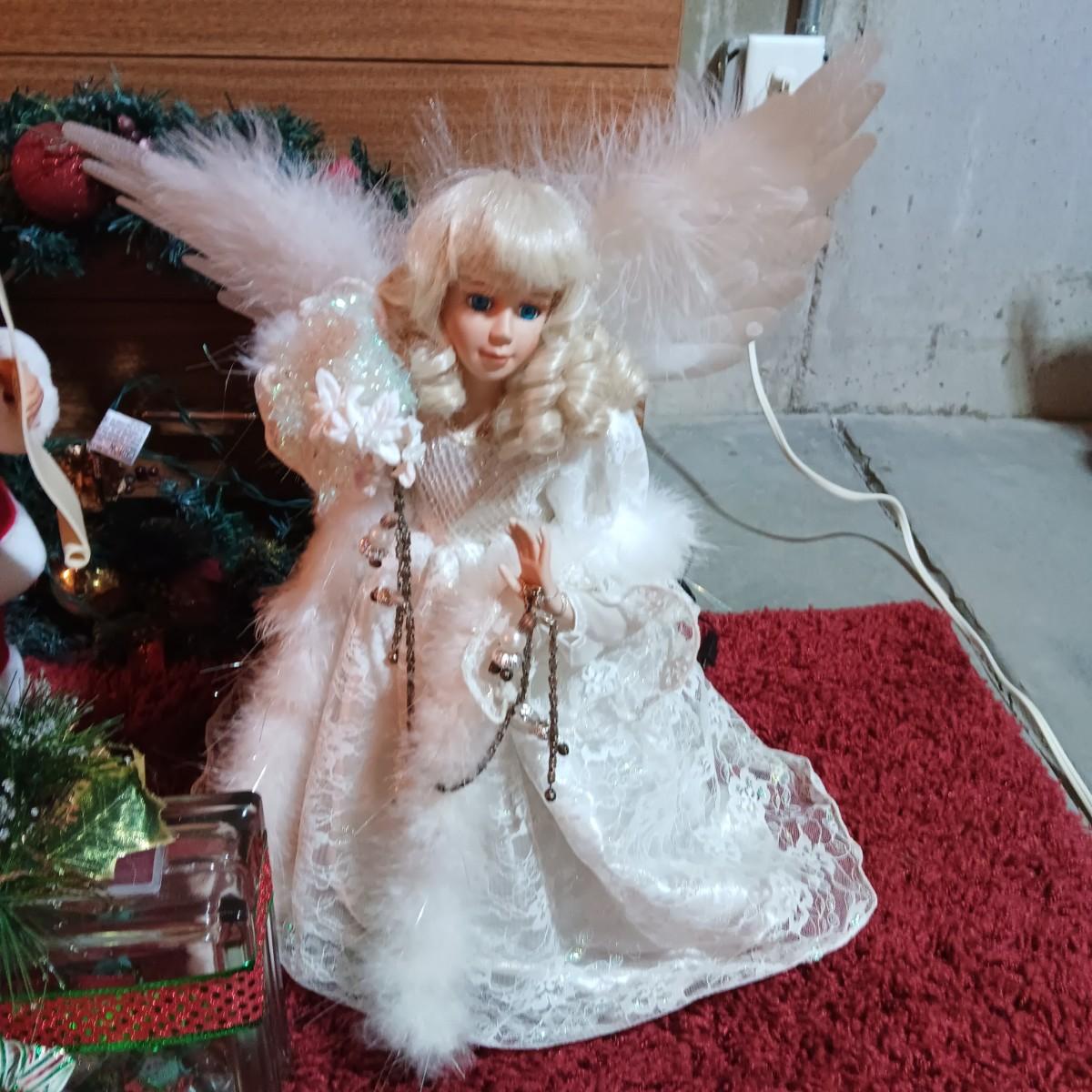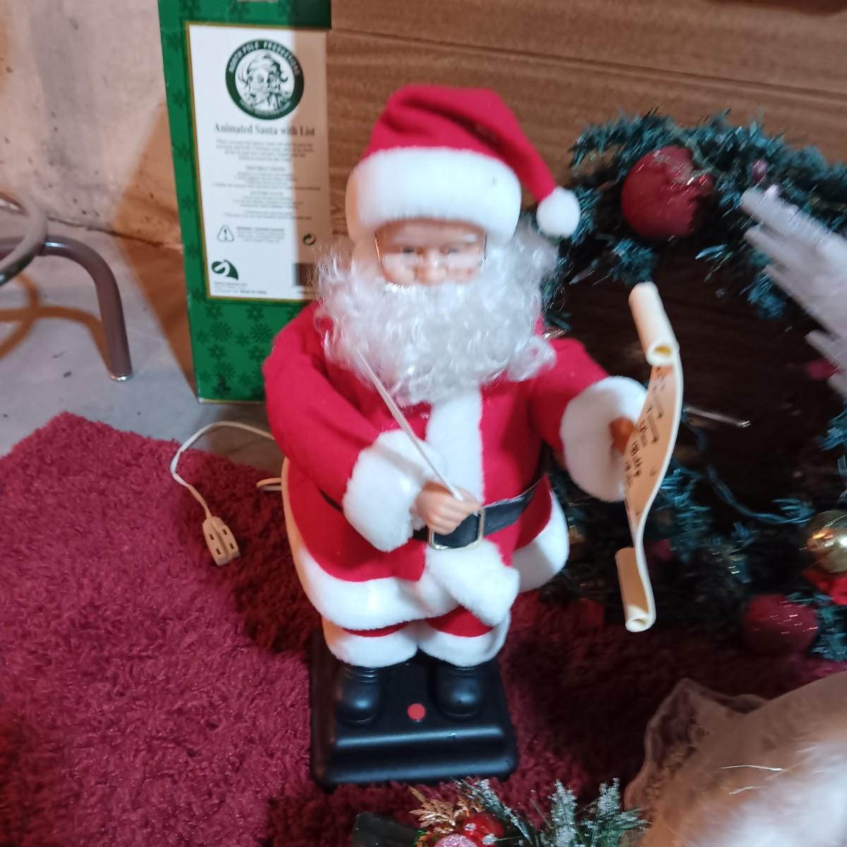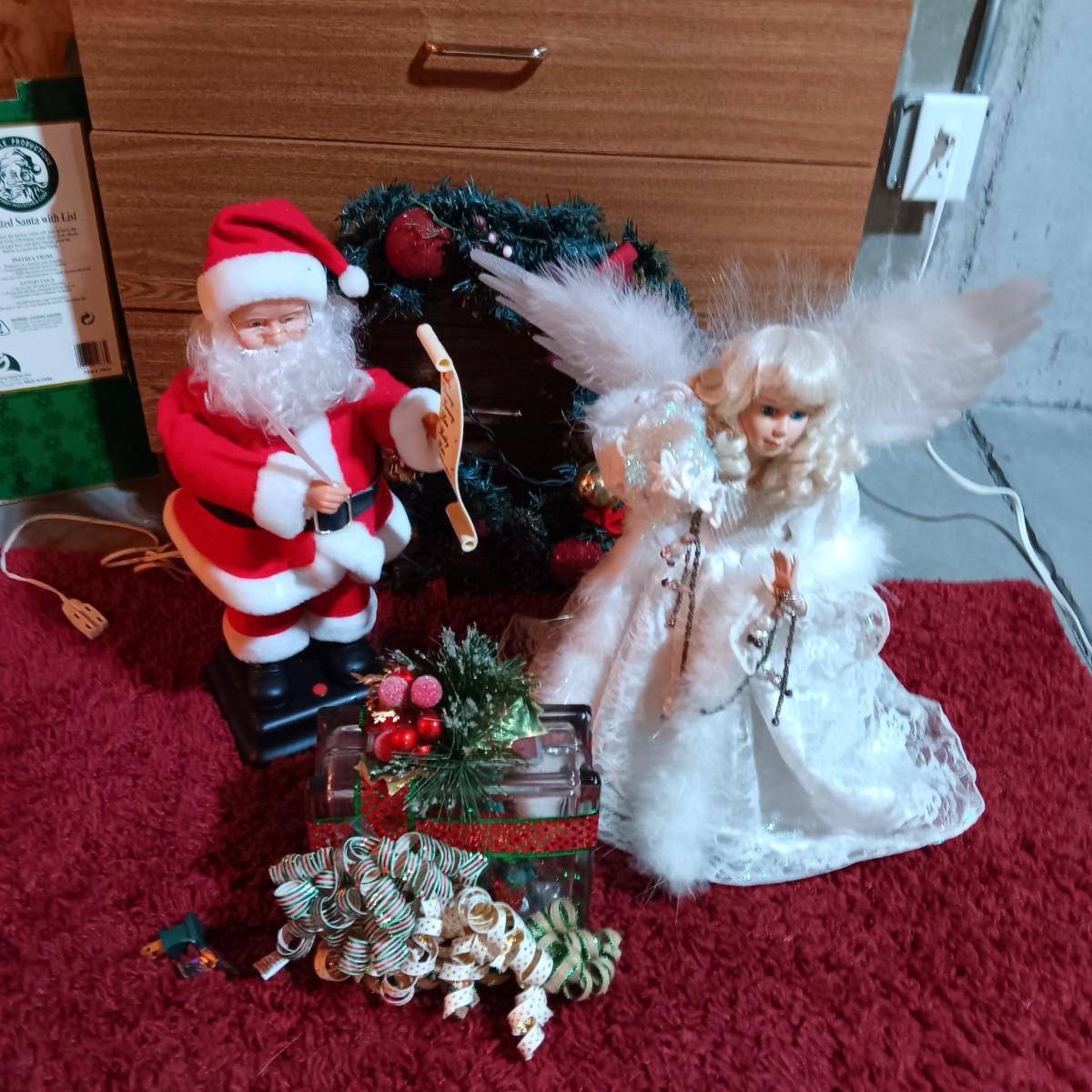 ANIMATED SANTA, LIGHT UP ANGEL AND GLASS BRICK PLUS A WREATH