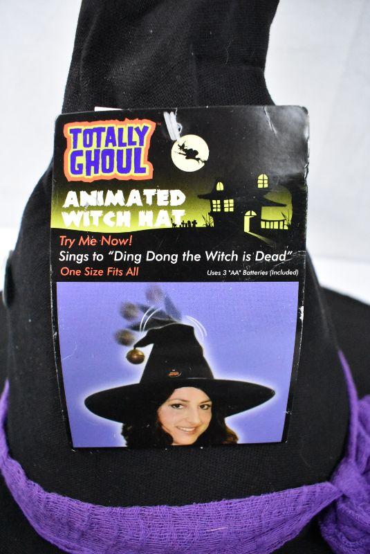 Animated Witch Hat Black/Purple, Moving Bell, "Ding Dong the Witch is Dead"- New