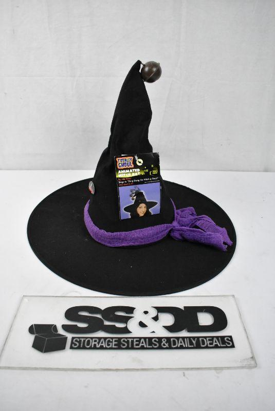 Animated Witch Hat, Black & Purple with Moving Bell, SIngs "Ding Dong the Witch is Dead"- New