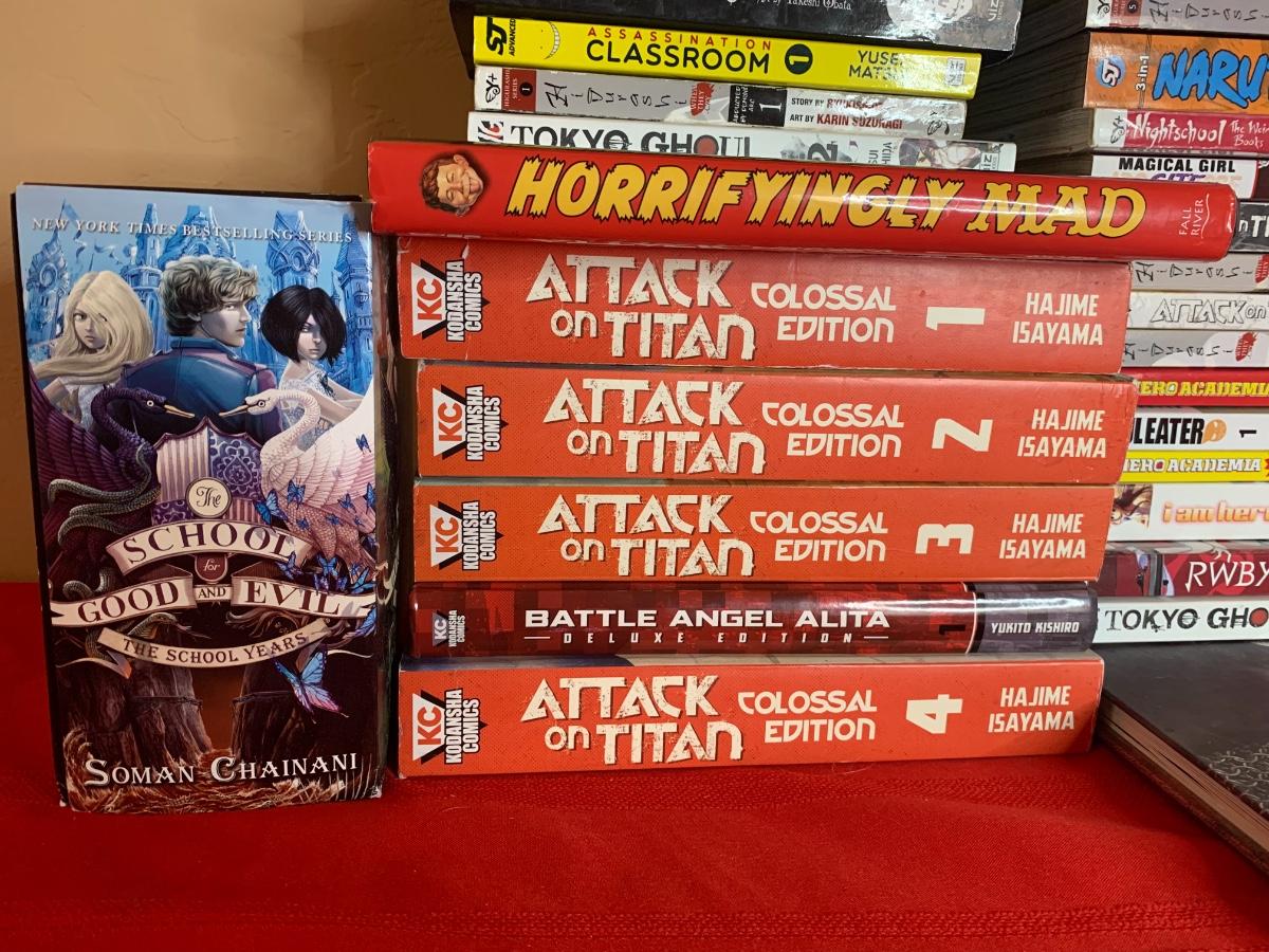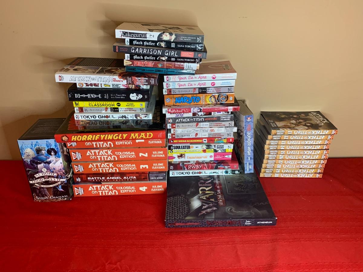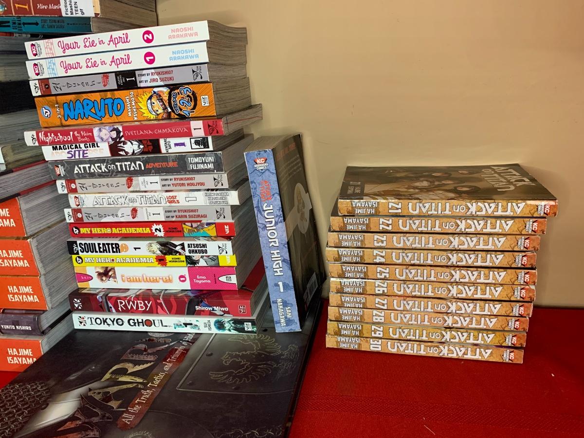 An assortment of anime and manga books all in good condition - Attack on Titan, Naruto, and more!