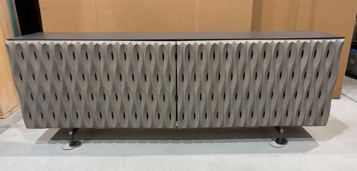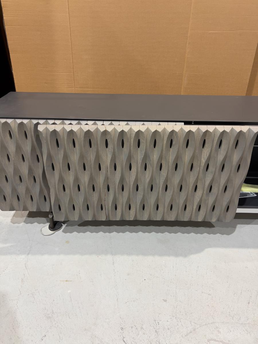 Extensive damage to one side, also cracked doors warped and End Damage too. This was a really cool piece of furniture and very expensive! But!! See Photos. 87 X 20 X 31" Tall