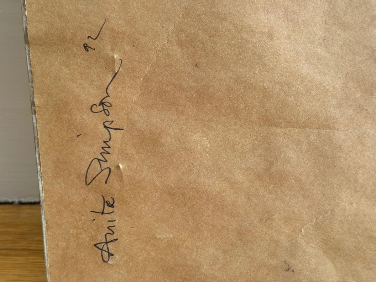 Anita Simpson, field in ochre, landscape, framed oil on canvas, signed, 1992