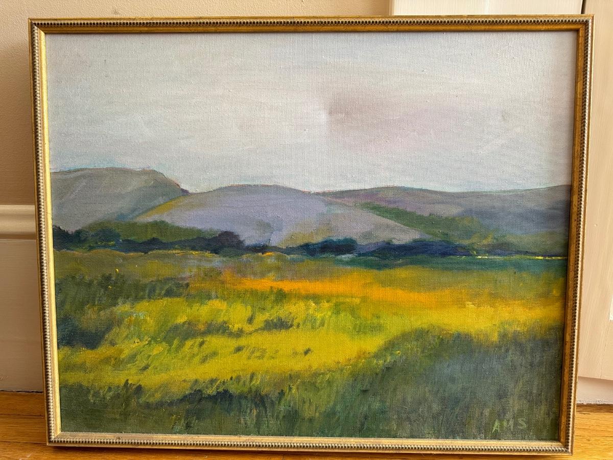 Anita Simpson, Oil one canvas mountain prairie landscape, impressionistic, framed, 25” W x 20” T