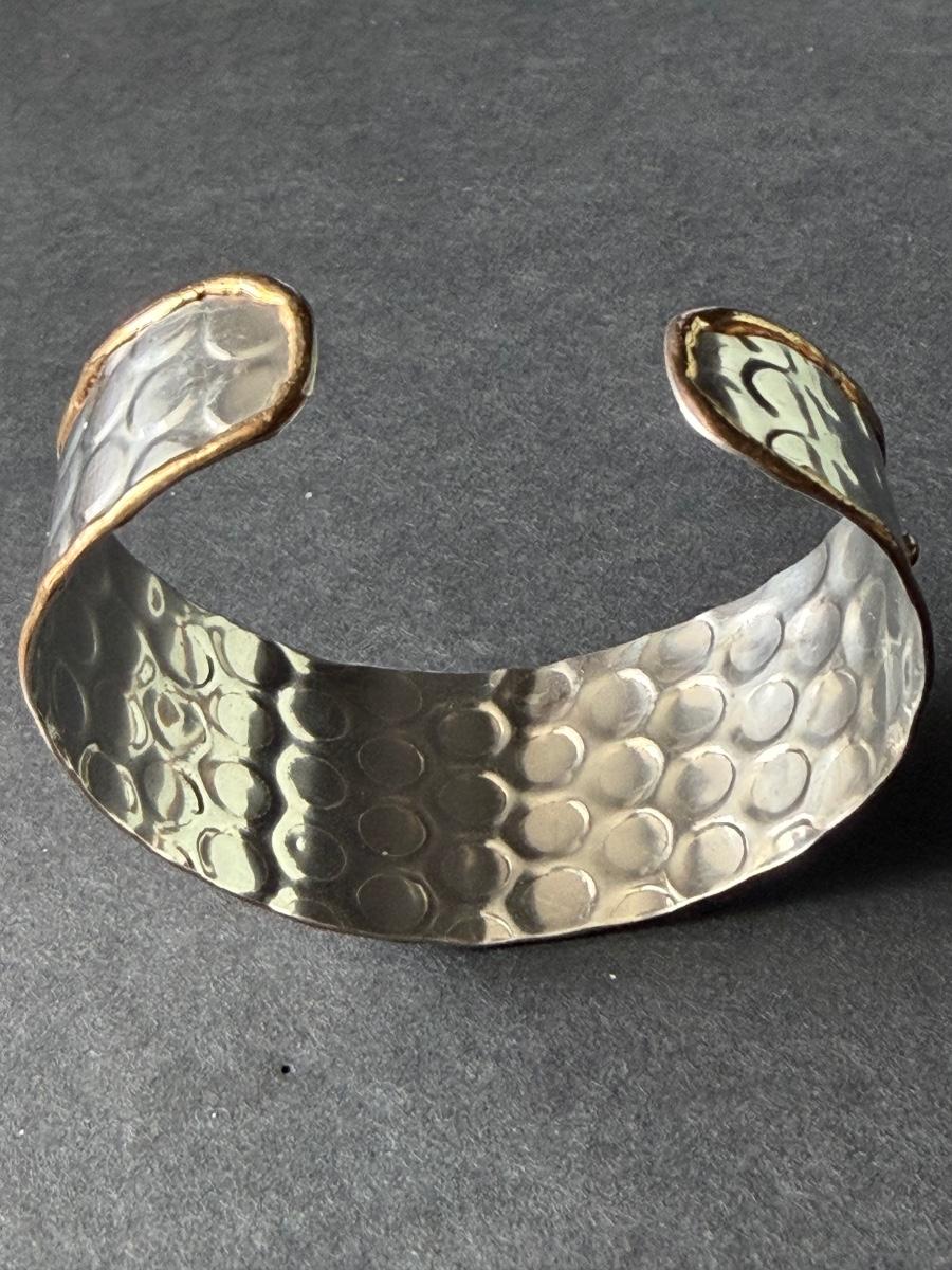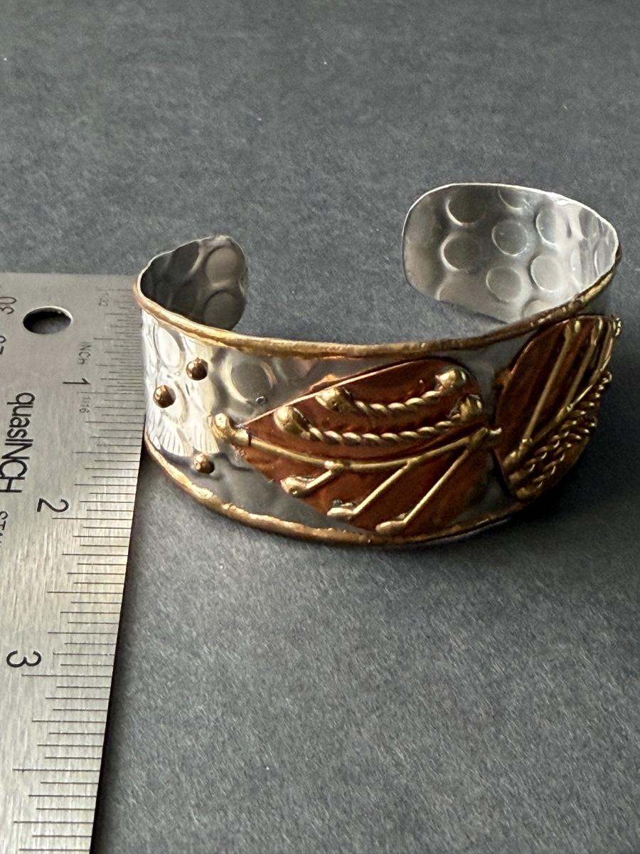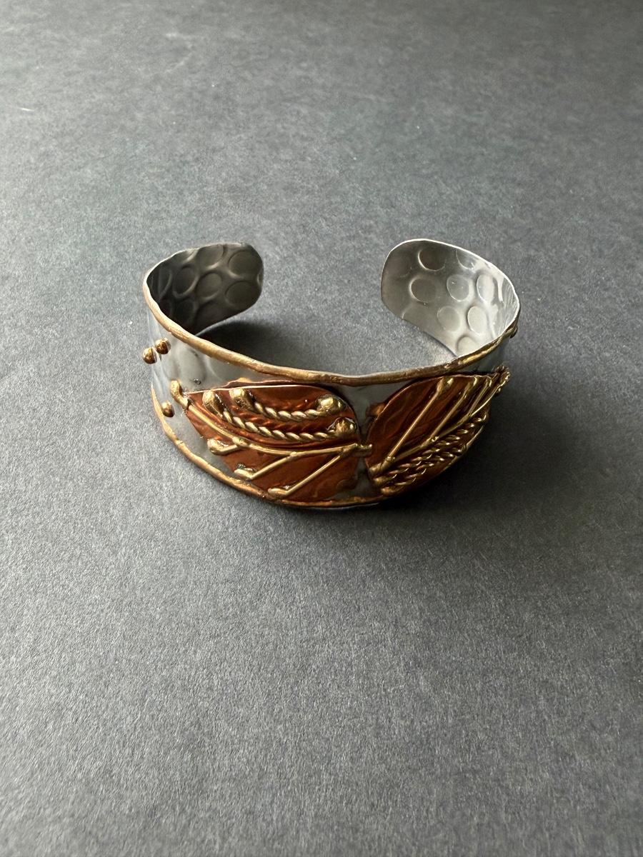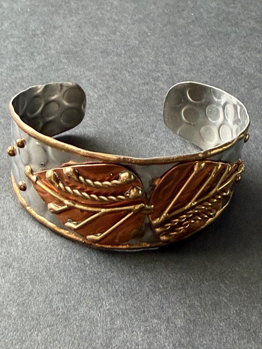 Anju Mixed Metal Cuff Bracelet featuring a tri-tone leaf design.