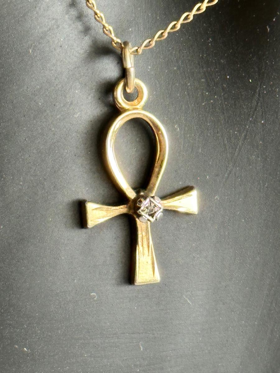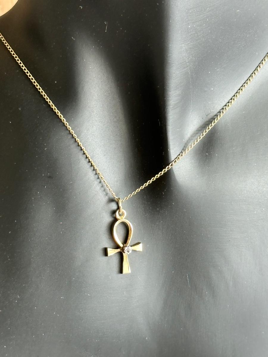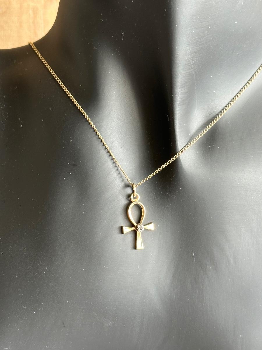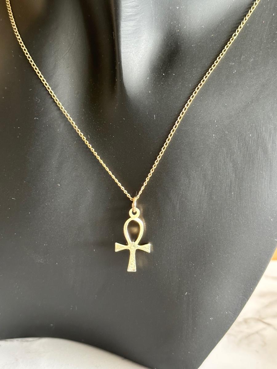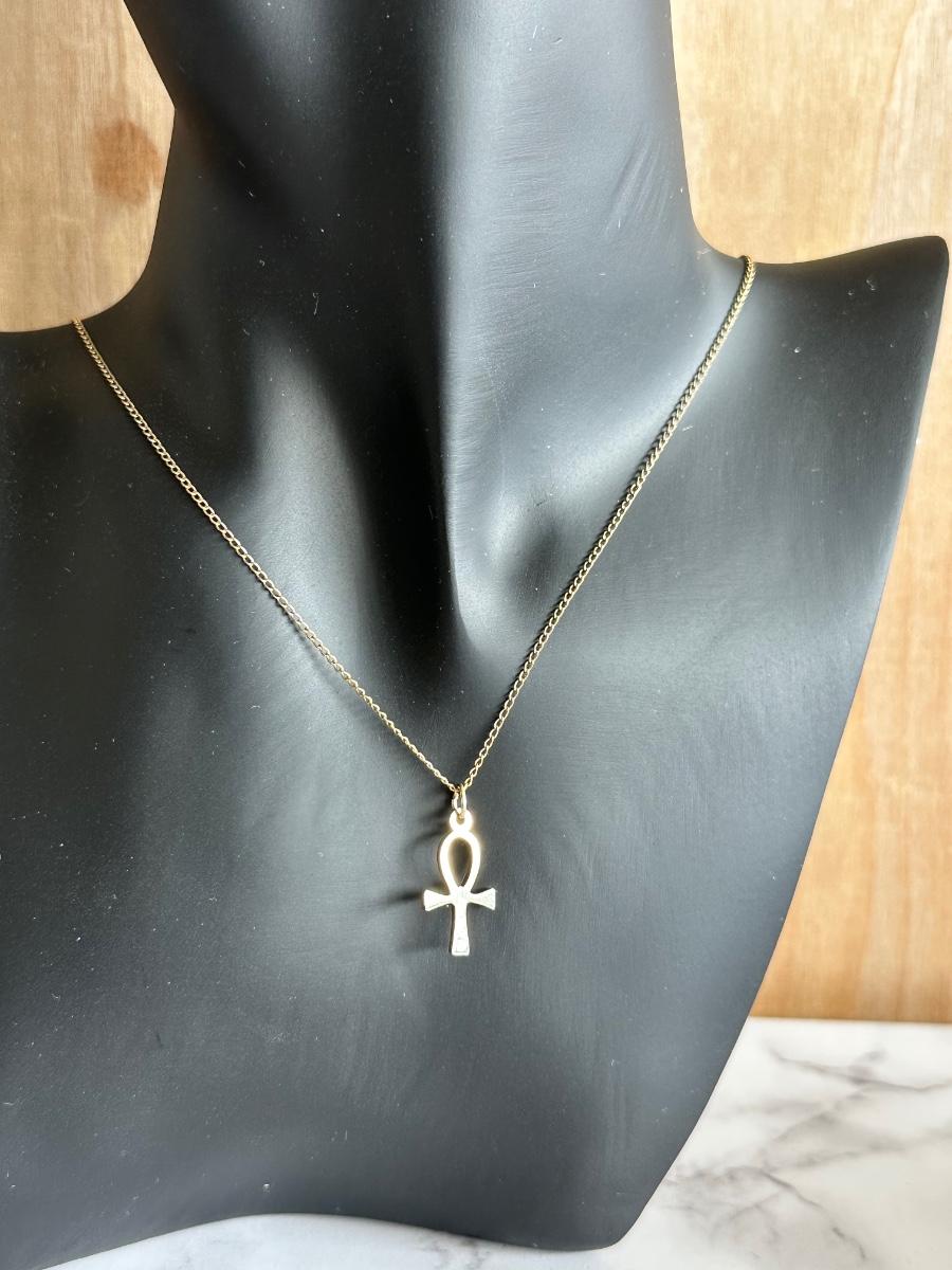 Ankh 12K Gold Filled Egyptian Cross Pendant, Necklace with 12K Gold Filled Double Link Cable Chain