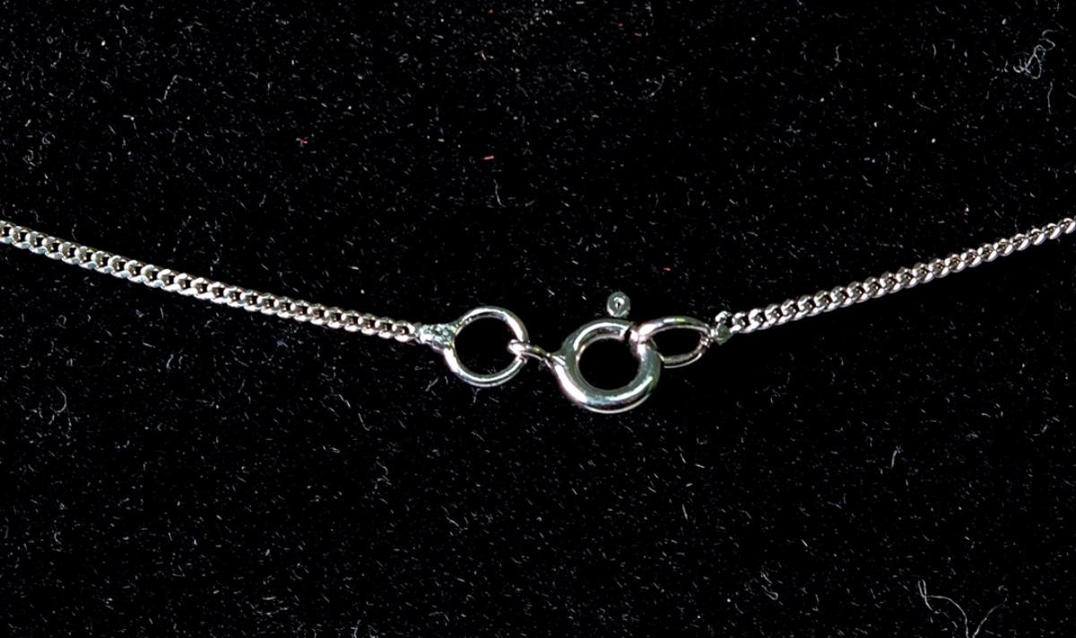 Chain stamped 925. Pendant likely just metal. Chain measures approx. 18", pendant 1.5".