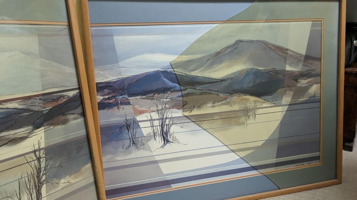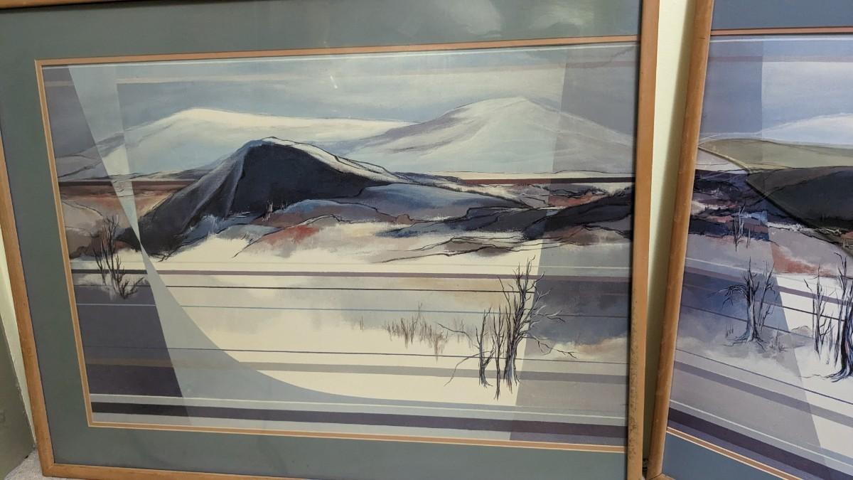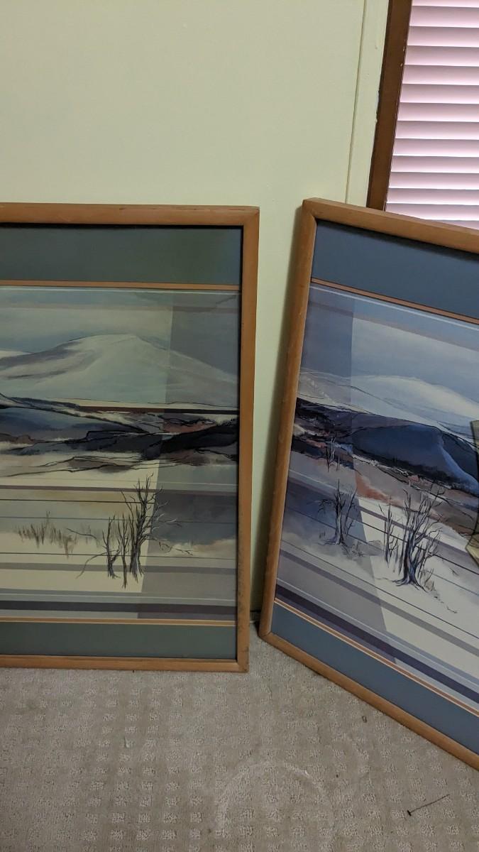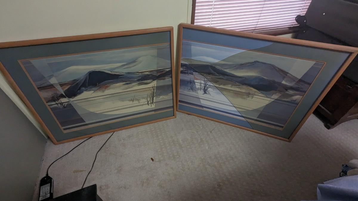 2ea, 38" x 30" both framed. One has broken glass. Prints are in good shape for age however. No shipping. bdrm1