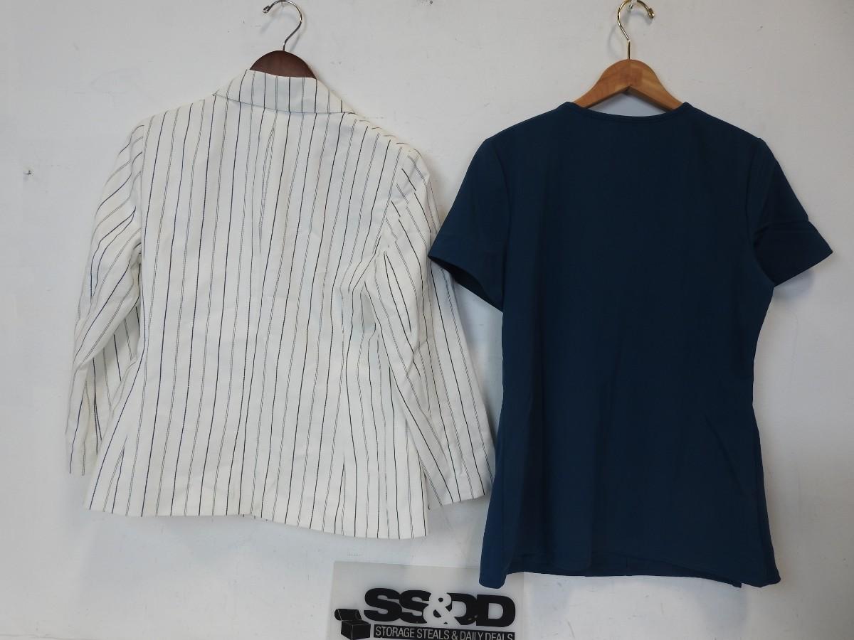 Ann Klein Striped Jacket, White/Black-Size S,-Warehouse Spots On Back-See Pictures, Scrubstar Top, Blue, Size S-New