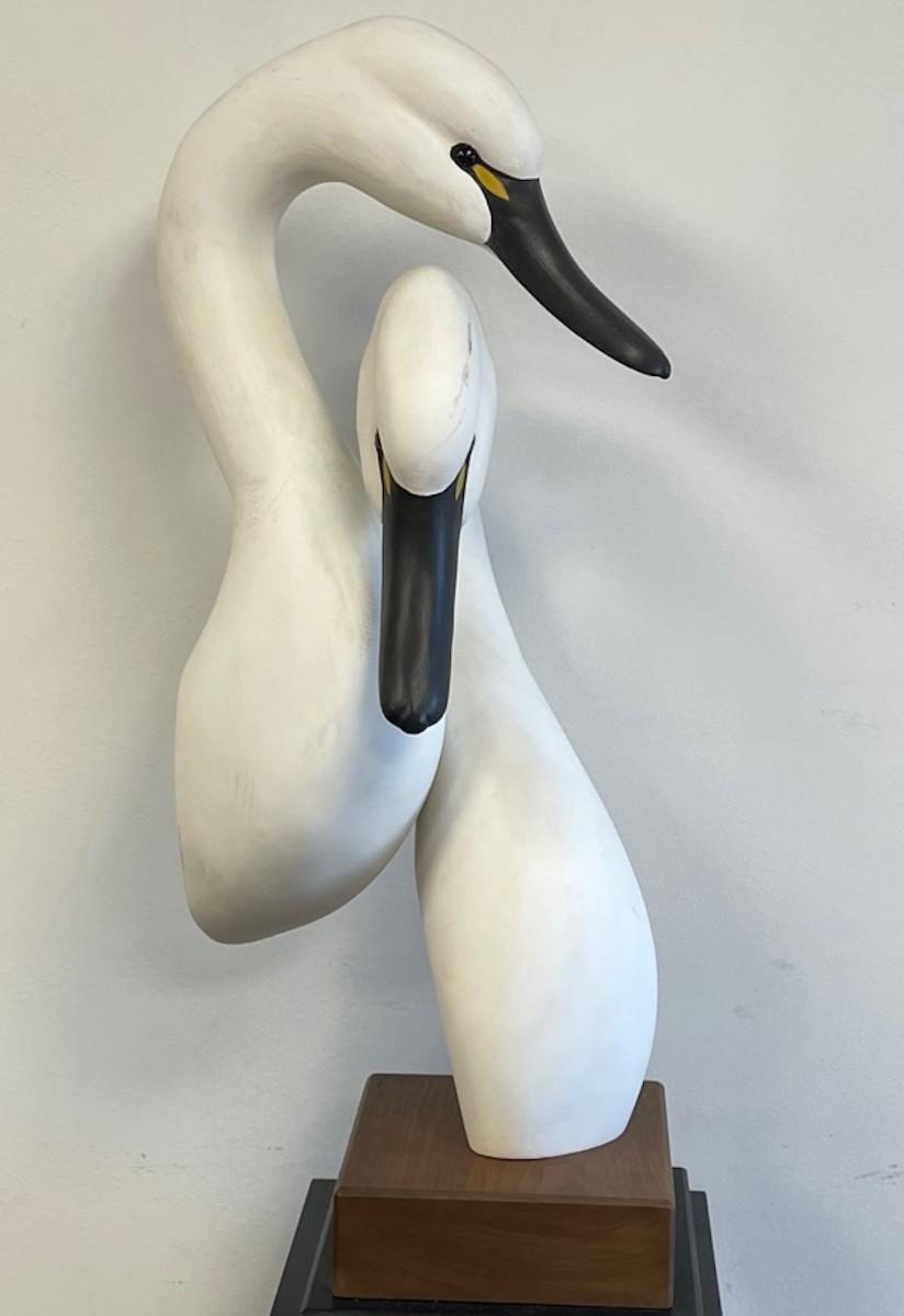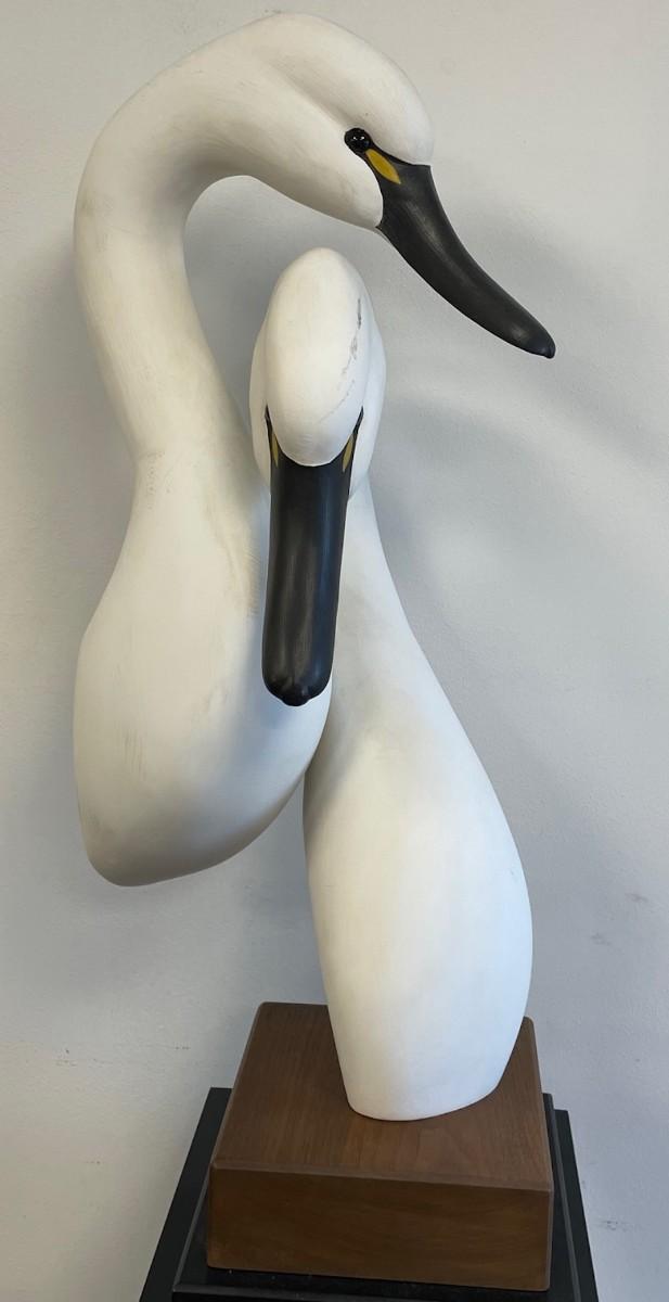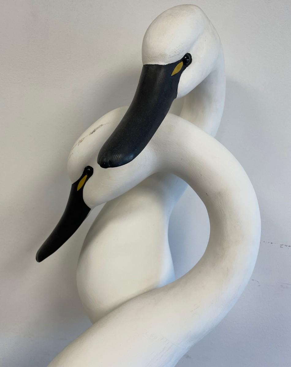 Ann Sears hand carved Loving Pair Swan Sculpture 28 X 9