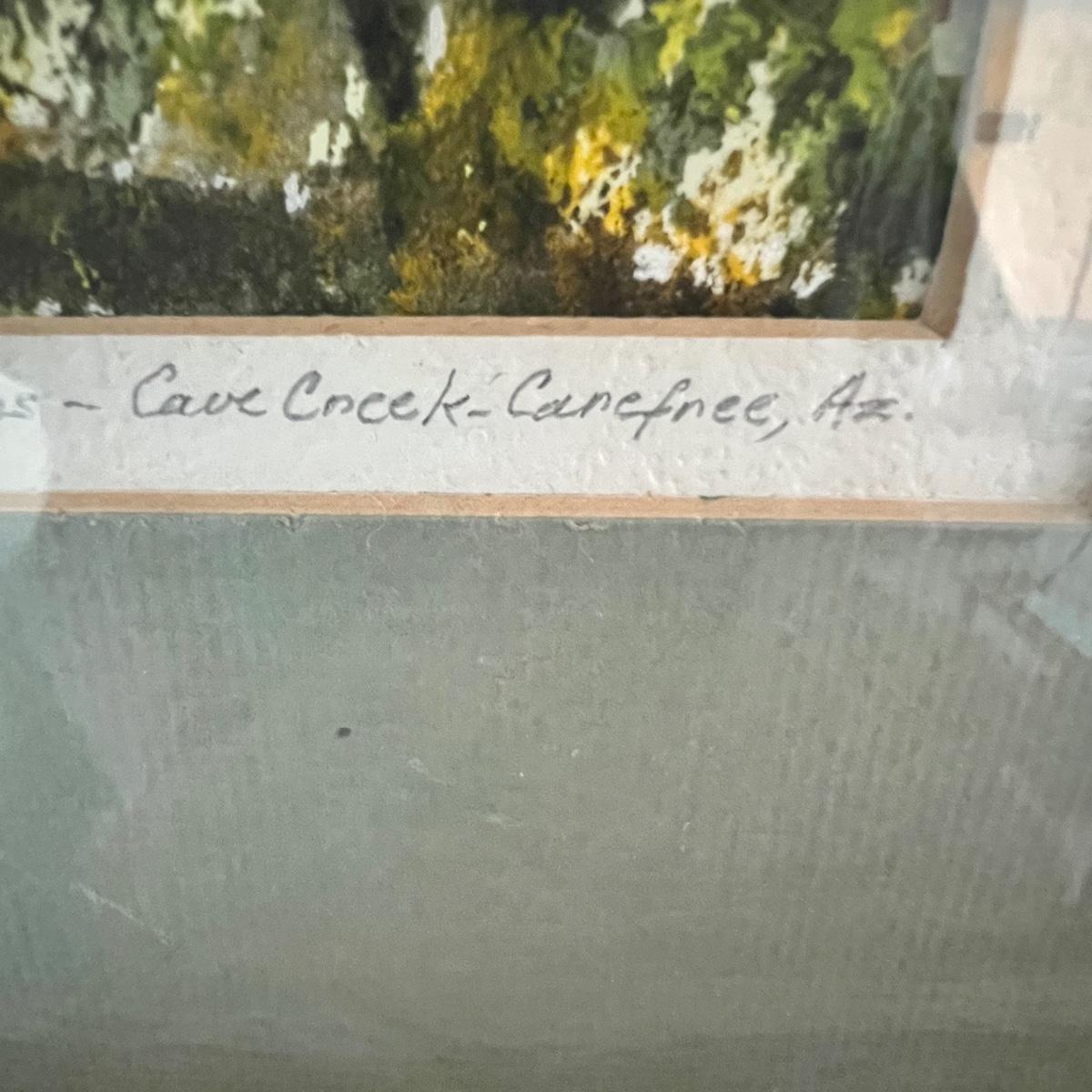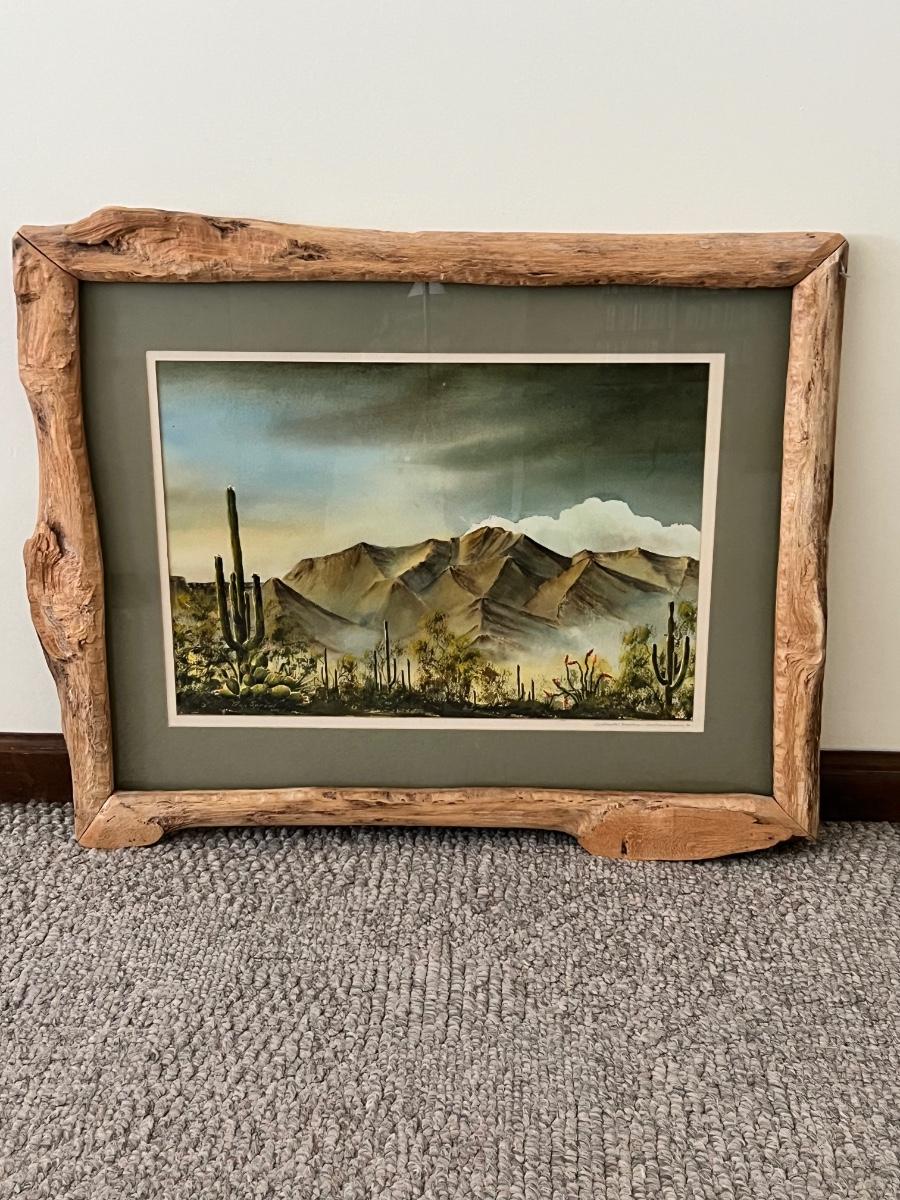 A lovely watercolor painting appears to be original. It is titled “Continental Mountains” - Cave Creek, Carefree Arizona. It has a wonderful rustic weathered wood frame and is matted and under glass.
