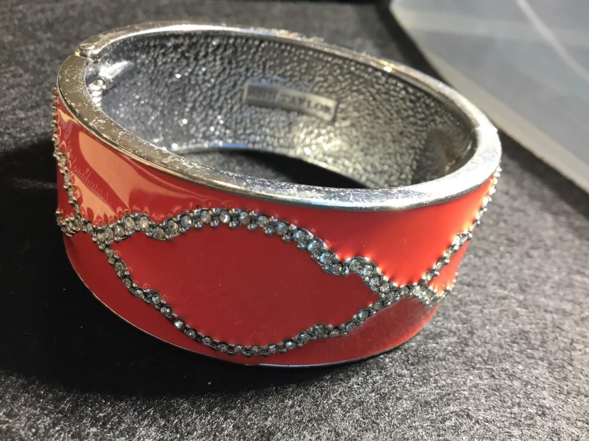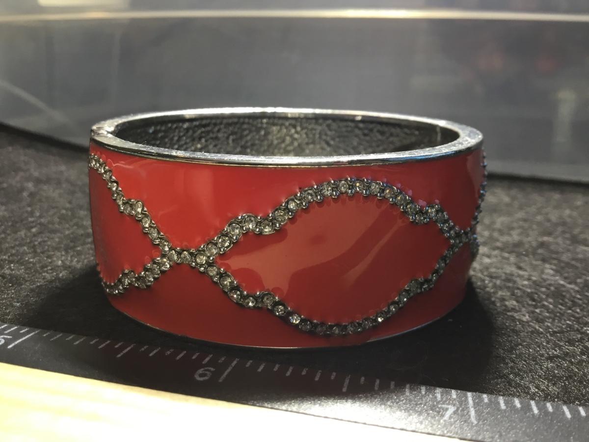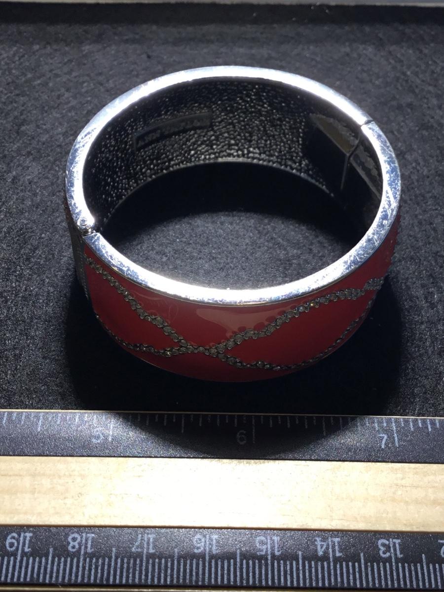 Ann Taylor rhinestone pink enamel hinged bangle bracelet