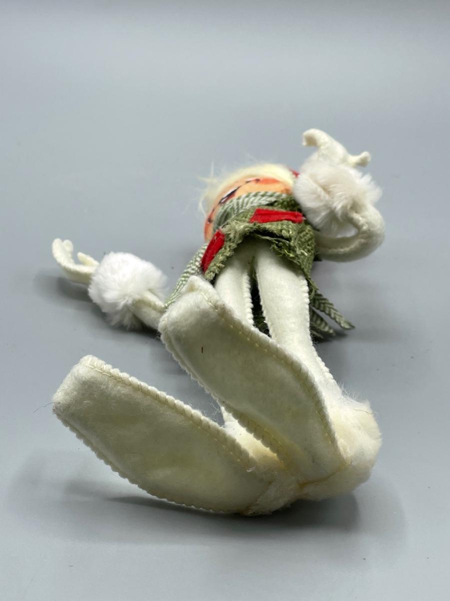 This item is in great condition and has No noticeable damages to it. It is approximately 8.5” tall. The doll is adjustable so it could be sitting or standing, however you desire.