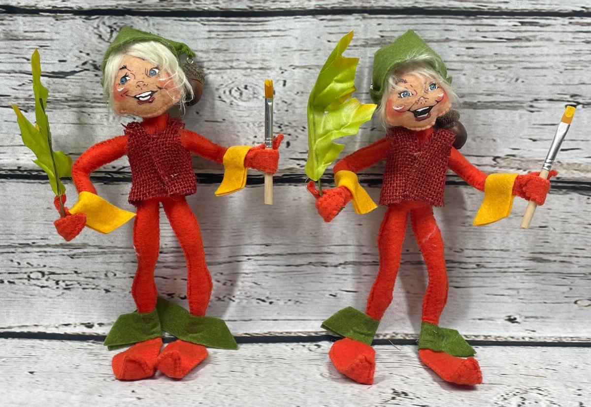 Annalee Adjustable 2012 Fall Elves Standing Doll Decoration Set of Two