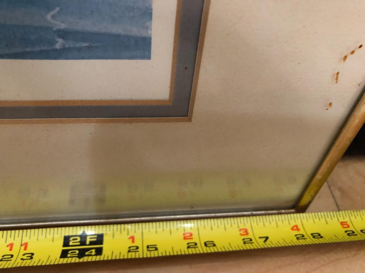 All items are sold as is, as found in the estate. Please see all photos for content, measurements and condition. This photo is vintage, the glass is very dirty, art may have some discoloration, and odor.