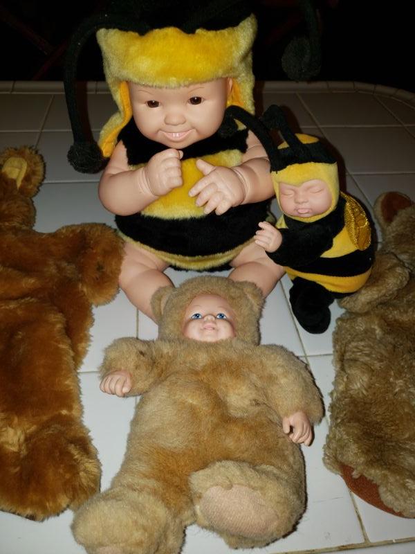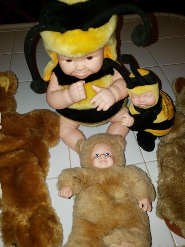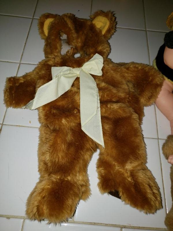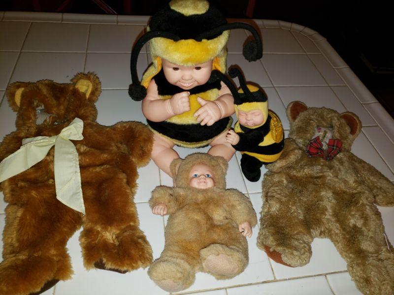 2 suits, 1 doll, 2 stuffed animals