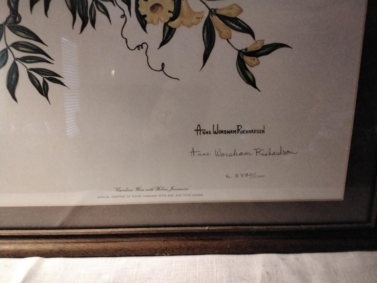 Anne Worsham Richardson - Carolina Wren with Yellow Jessamine Signed and Numbered