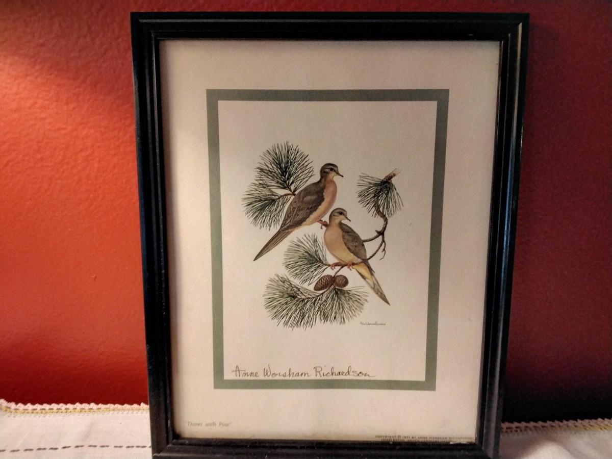 Anne Worsham Richardson . "Doves with Pine" . Signed and Titled Print from an Original 1971 Watercolor