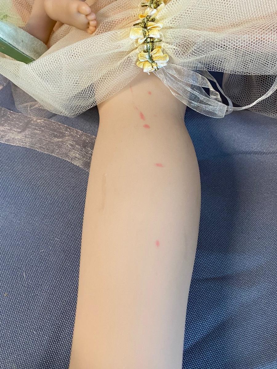 Some marks on leg, top is torn at the very top on the seam as shown in pictures