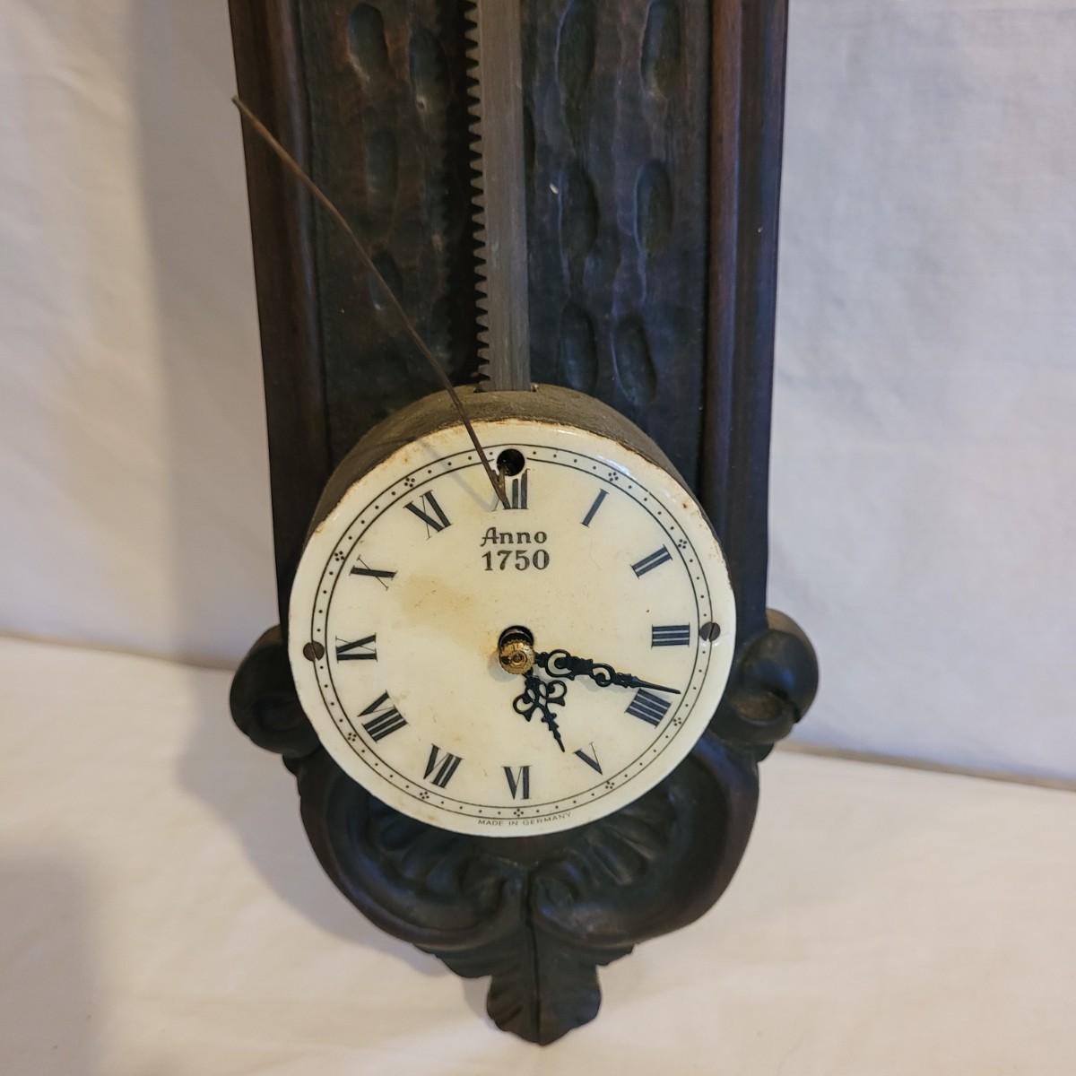 This vintage wooden gravity clock is not currently functional. Measures approximately 4.5" x 26.5". Shipping available.