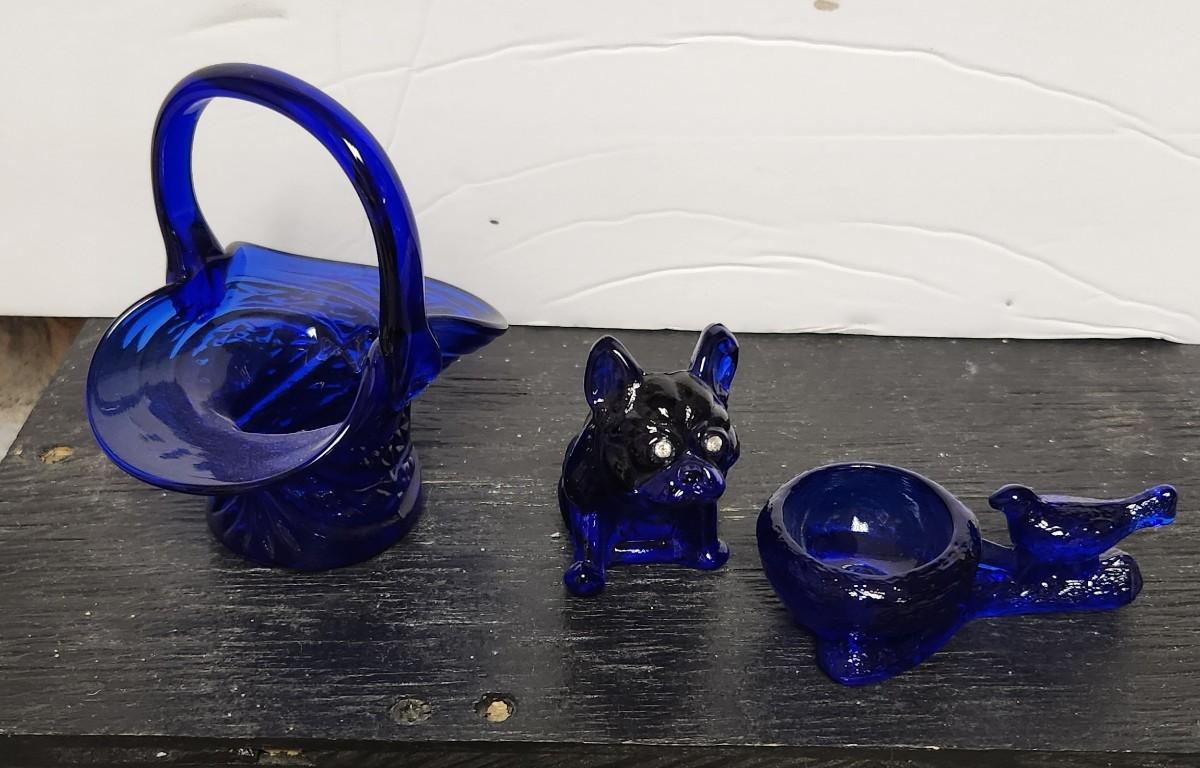 Another 3 cobalt; bird salt, bulldog and mini basket