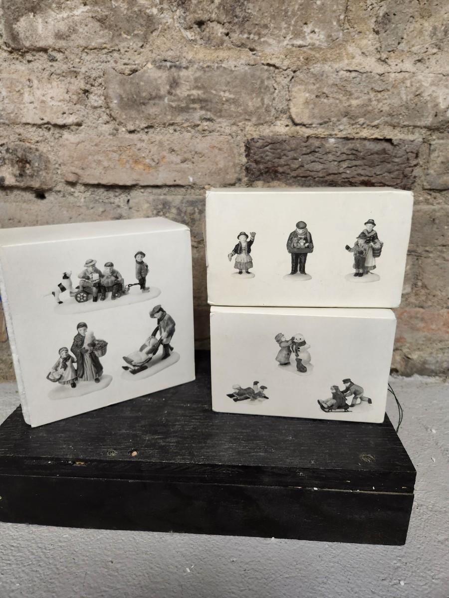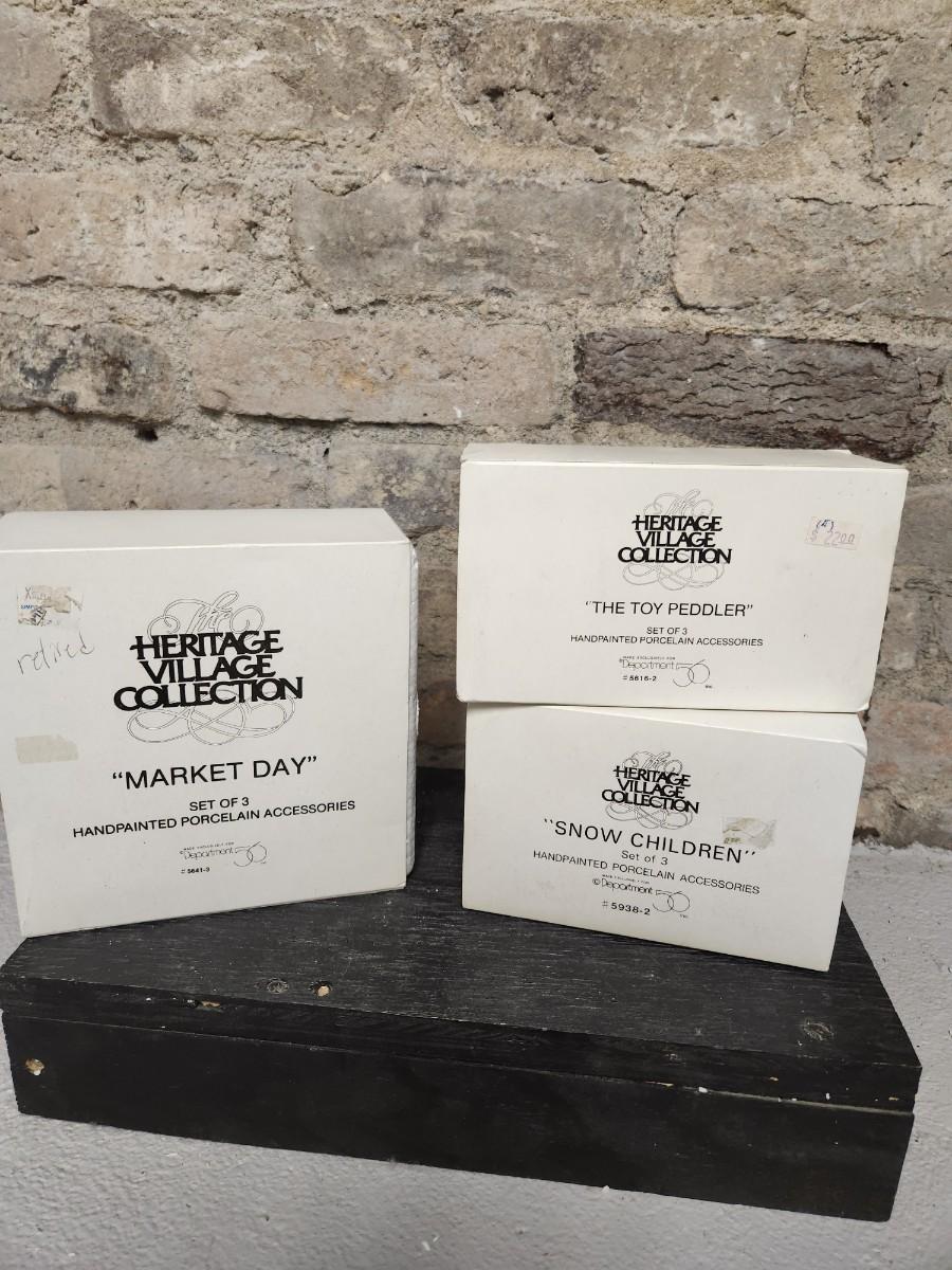 Another 3 sets in box of Dept. 56 accessories. Toy Peddler, Snow Children and Market Day