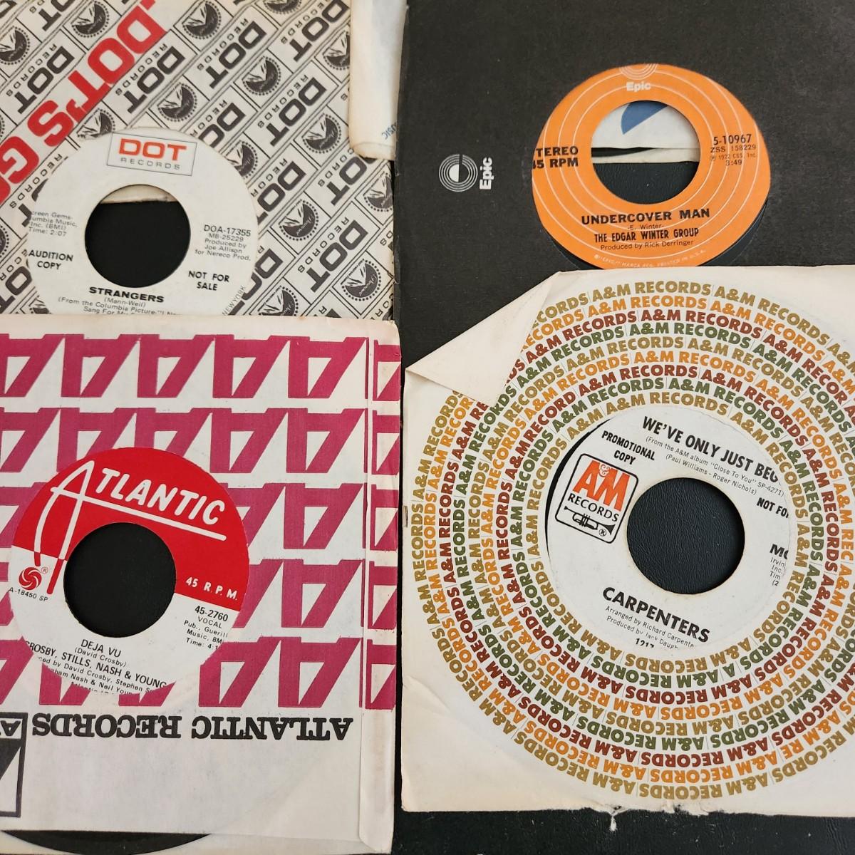 Another Large Lot of Vinyl Records 45 RPM Edgar Winter Carpenters, CSNY , Barbarians , 5th Dimensions & More See pic