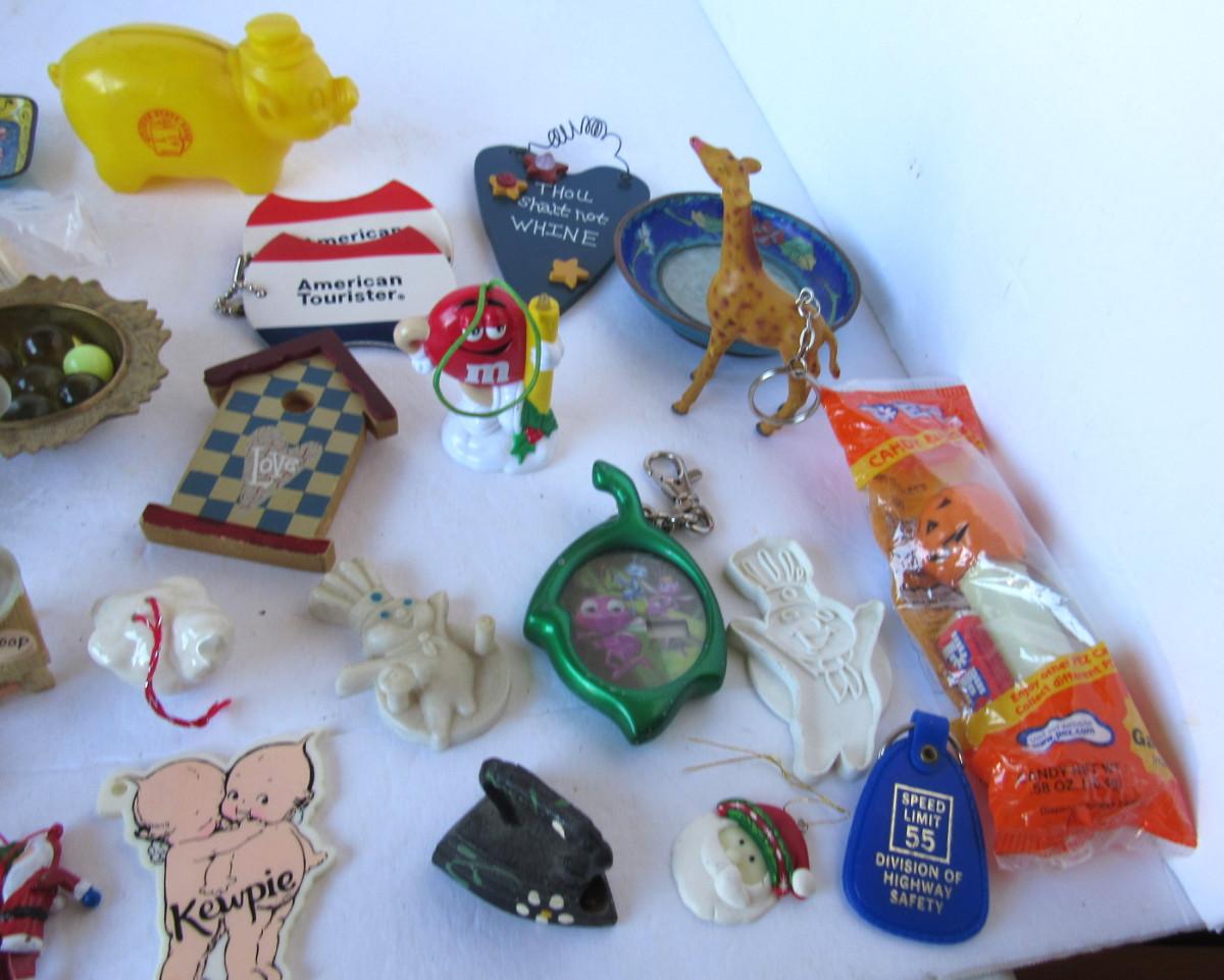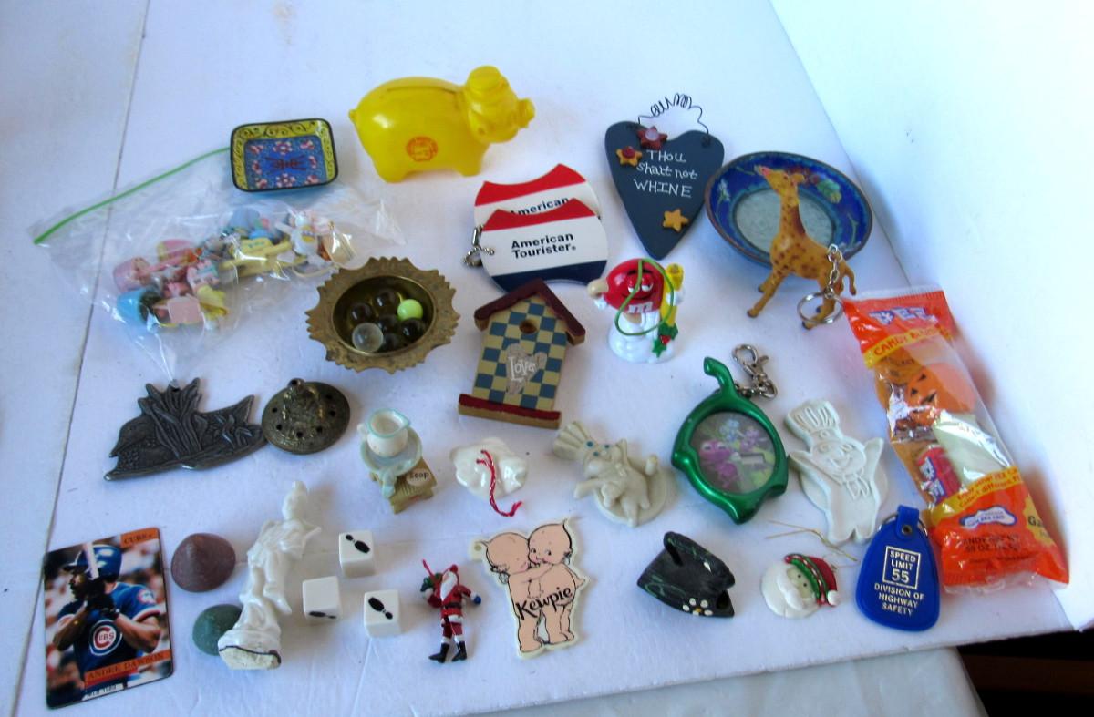 Key Rings, and misc stuff, bank, more. Well used to good. Shipping is available at actual shipping cost plus $5.00 handling fee per box for supplies/labor. See our terms for details. All sales are final. Condition notes may not be all inclusive, we may miss some issues as most vintage items are not in mint condition and have some degree of wear, paint loss, etc, but we always try to note obvious damage.