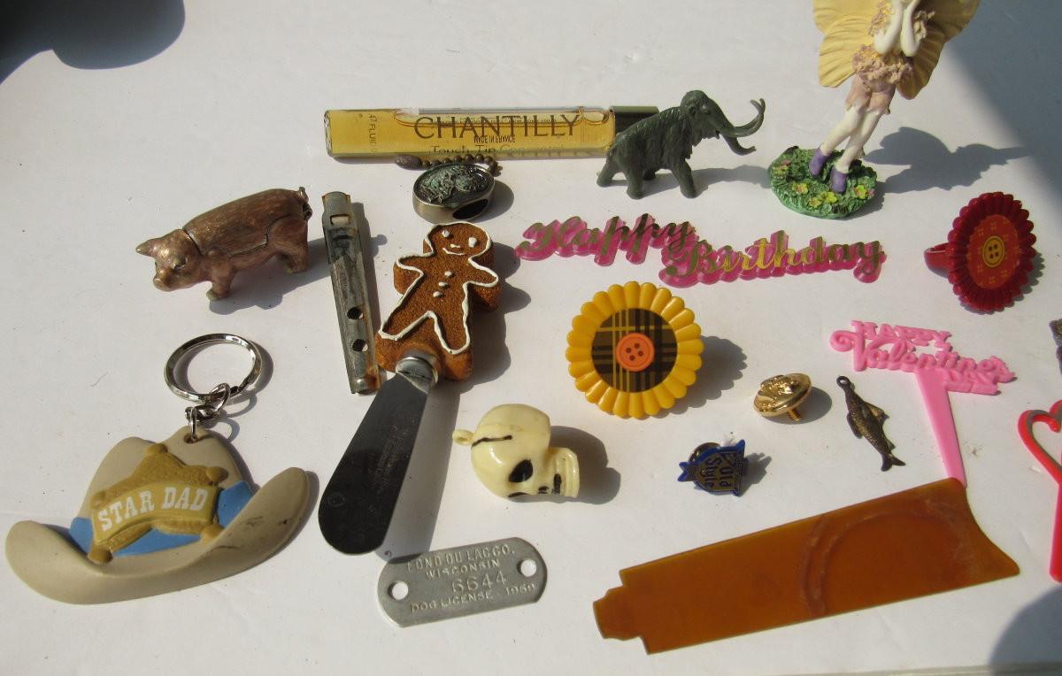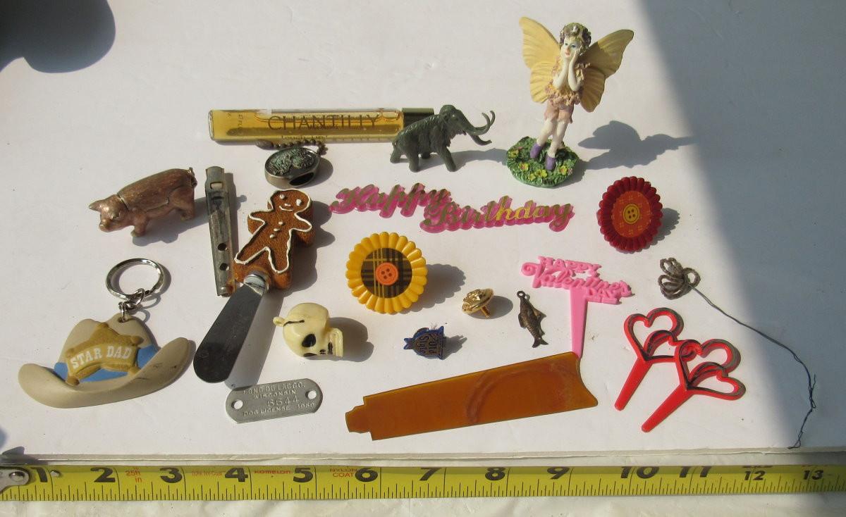 Chantilly perfume, cake toppers, old whistle, charms, etc. Shipping available at USPS cost plus extra handling fee for each box mailed. See our terms for details.