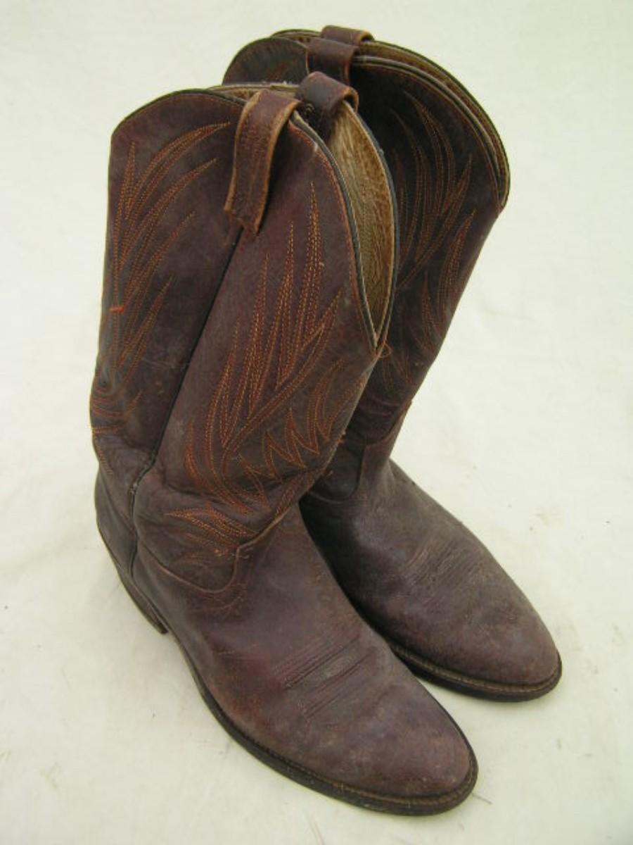 Another pair of boots. No name on these but they are good leather. Must have been her riding/roping boots since they show more wear. Again guessing size 7 to 8.
