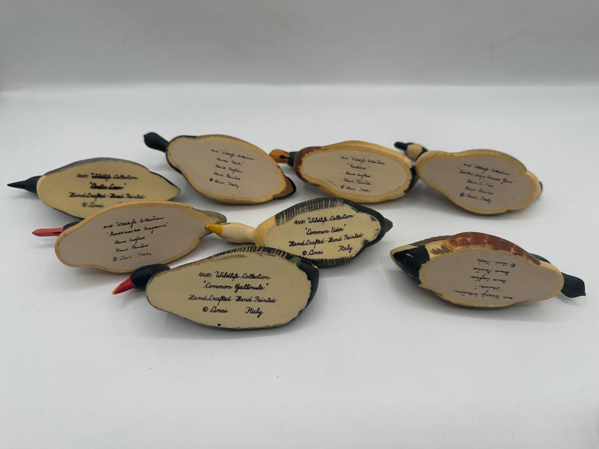 ANRI Italian Hand-Carved Wooden Wildlife Bird Figurines. 8 total.