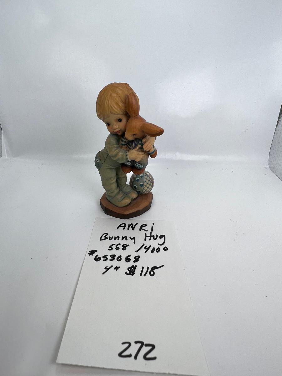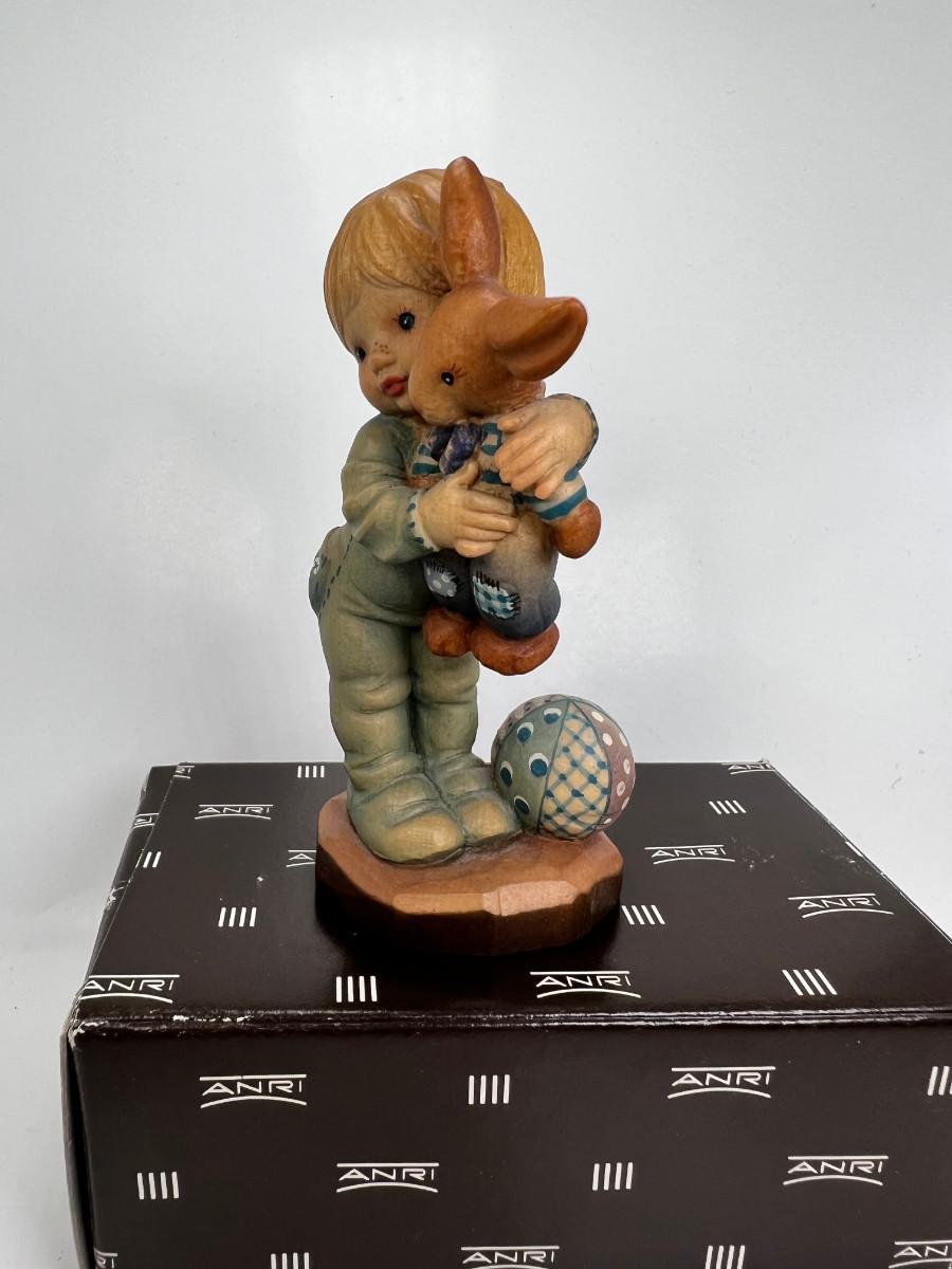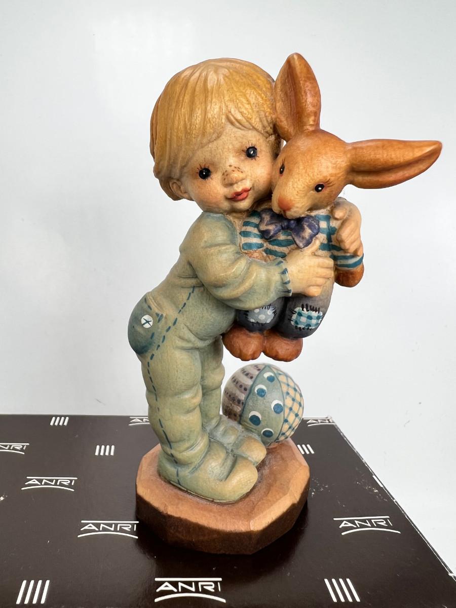 ANRI Italian woodcarving Collectible figurine "Bunny Hug"