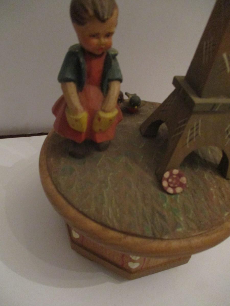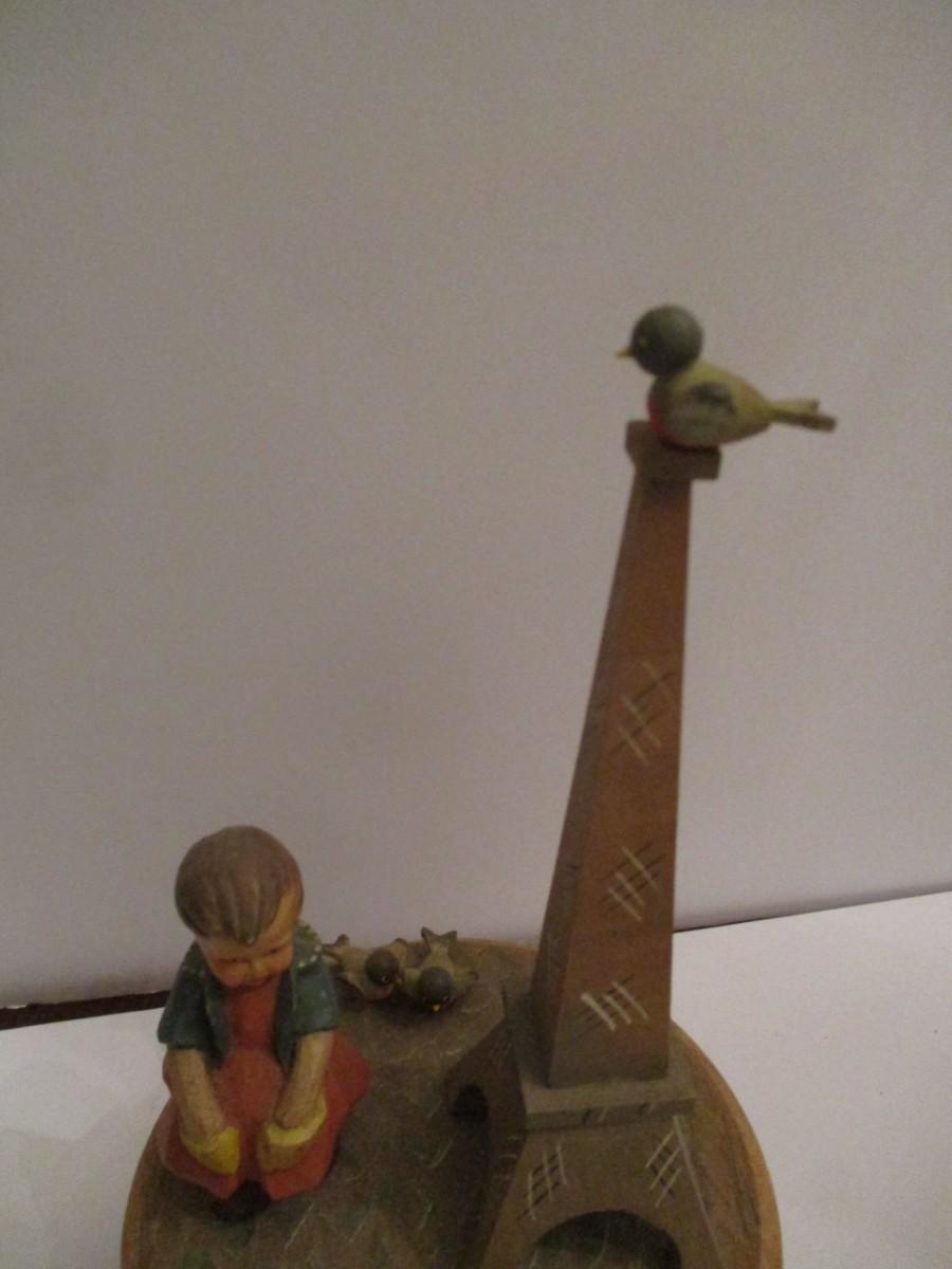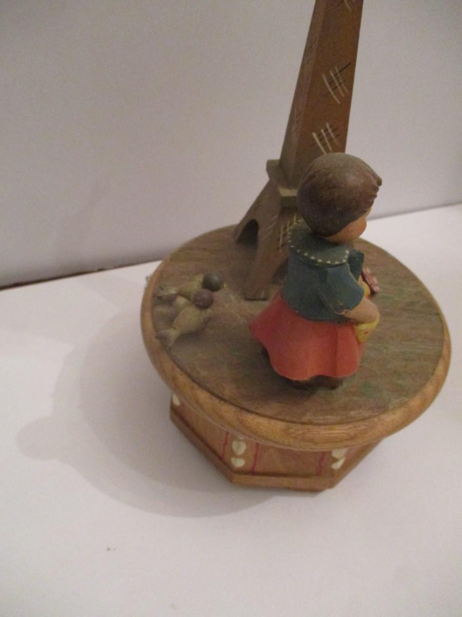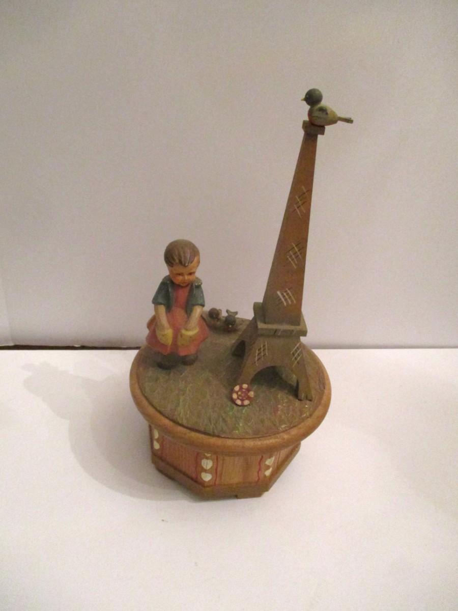 Anri Thorens Eiffel Tower Hand Carved Wood Revolving Music Box