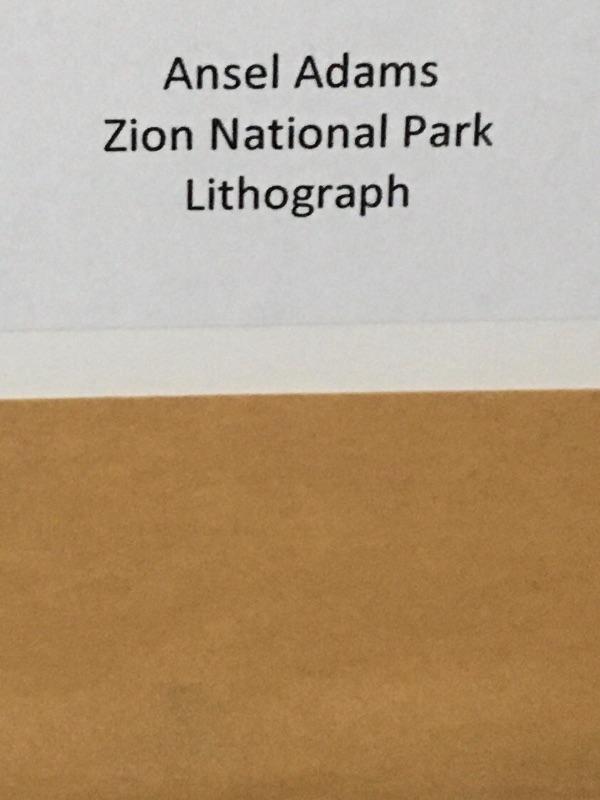 ANSEL ADAMS “Zion National Park” Original Lithograph and Frame. LOT 59