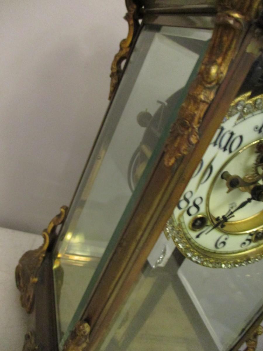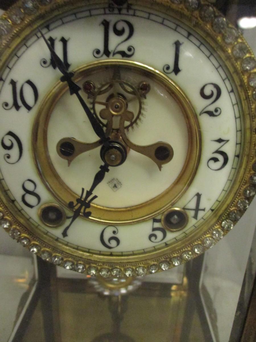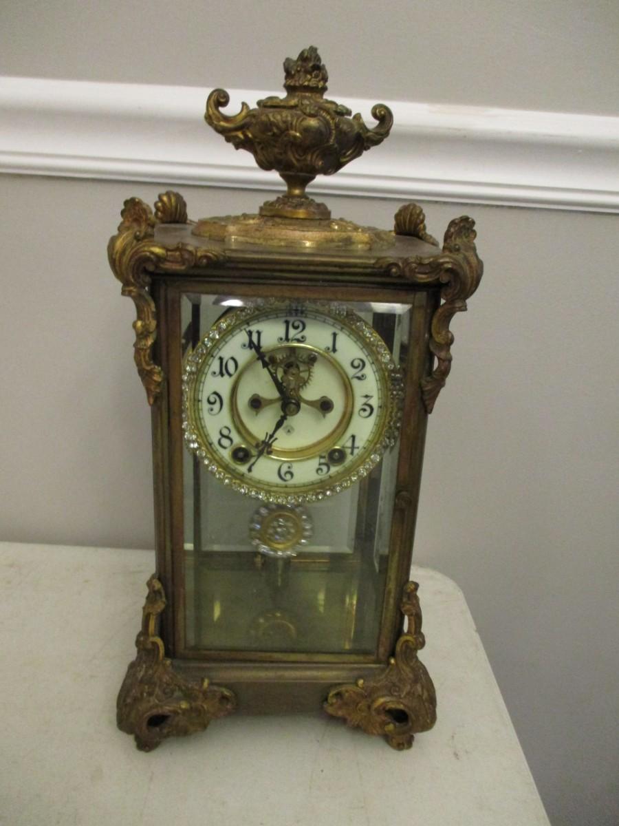 Ansonia Clock Co. Brass & Glass Mantle Clock