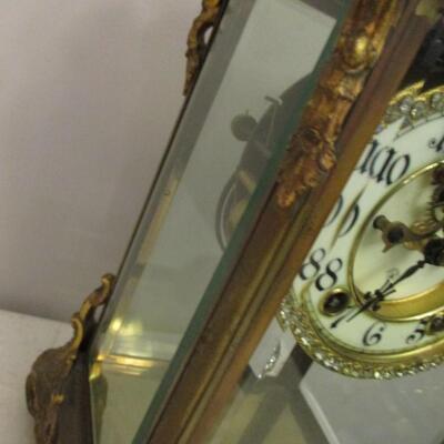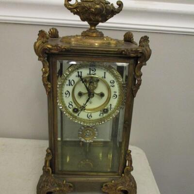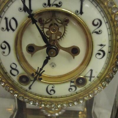 Ansonia Clock Co. Brass & Glass Mantle Clock