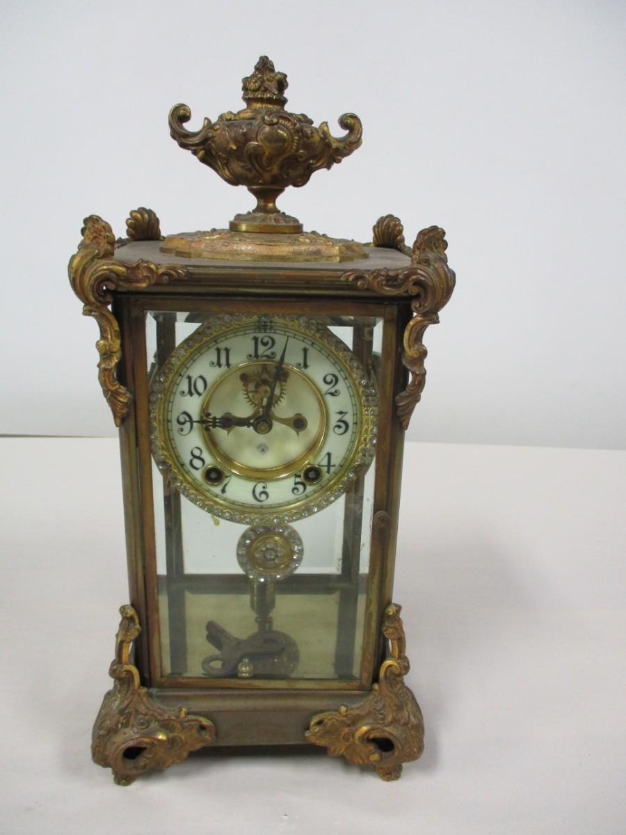 Ansonia Clock Co. Brass & Glass Mantle Clock