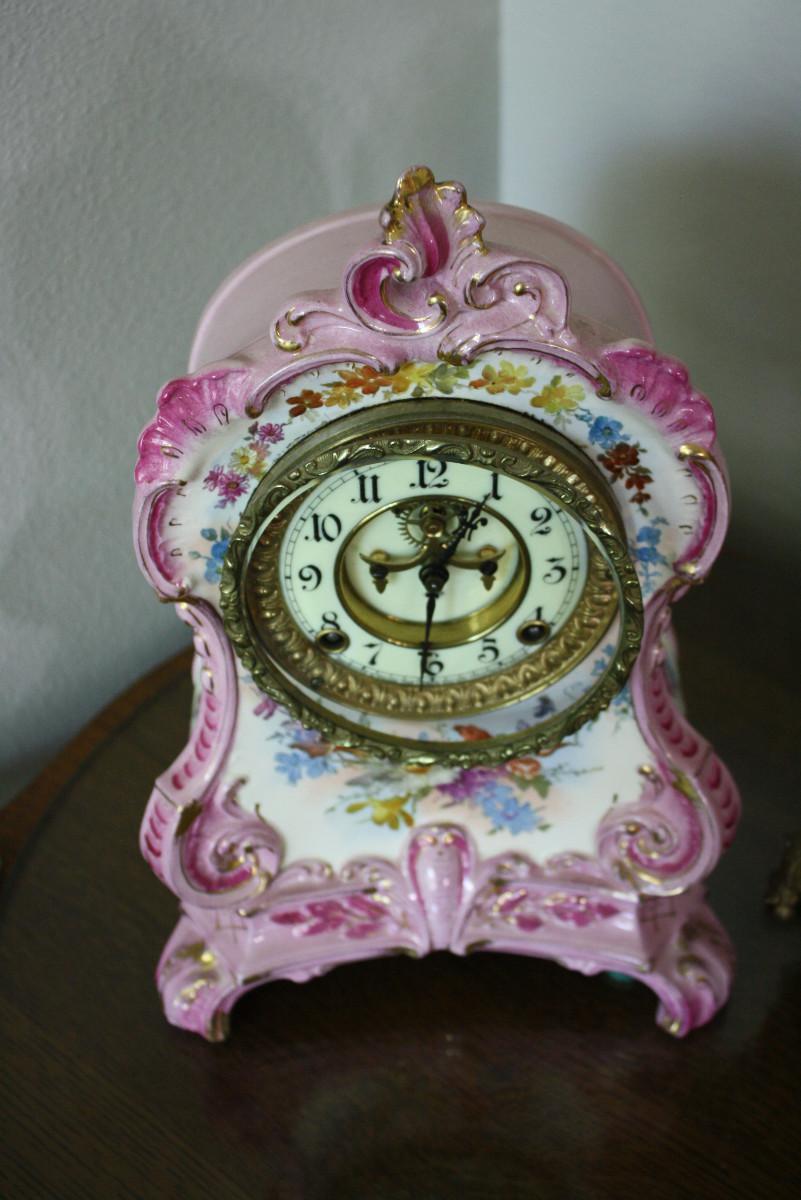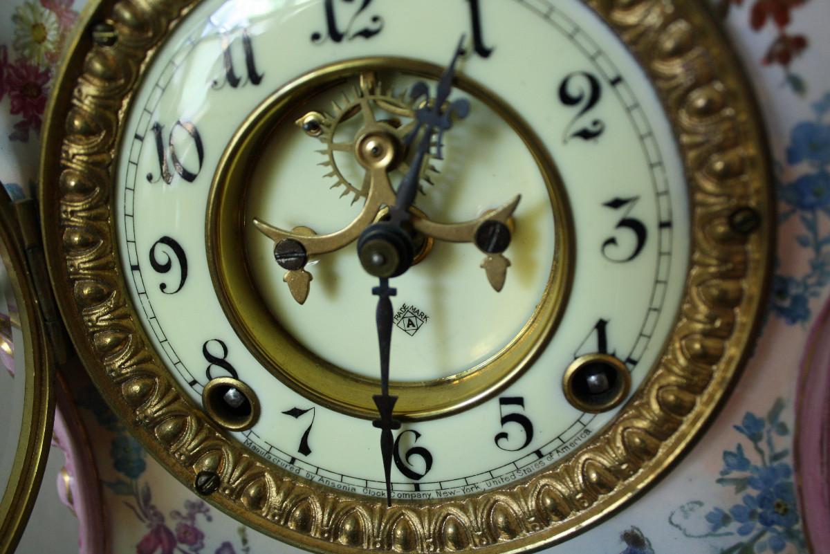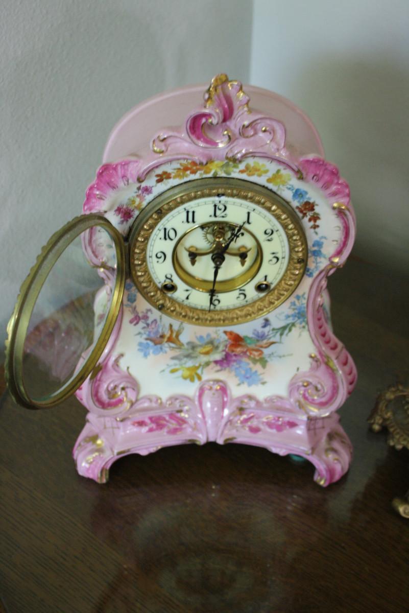 Ansonia Royal Bonn Open Escapement 14" mantle clock porcelain (KP/CN)