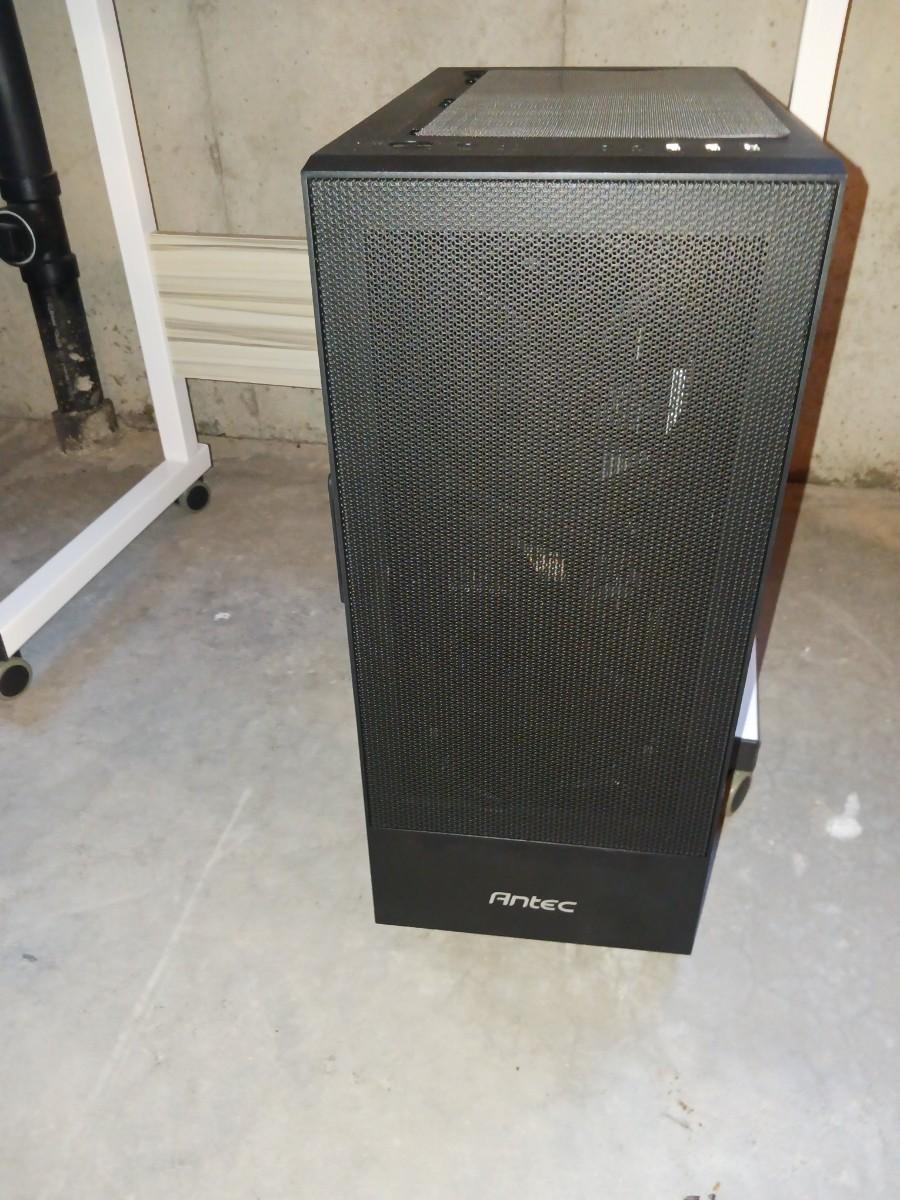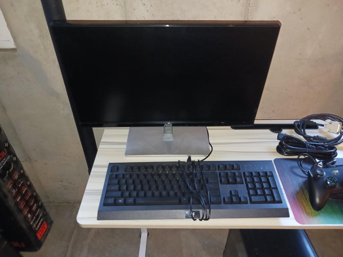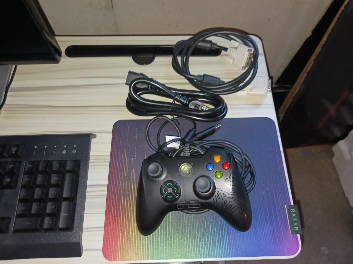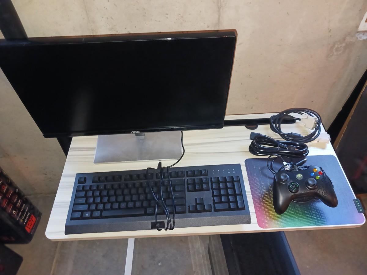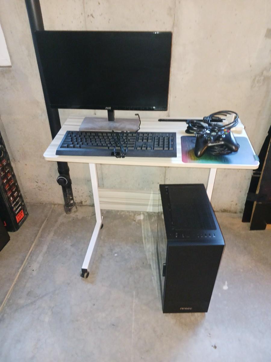 ANTEC TOWER, SMALL TABLE, KEYBOARD, XBOX CONTROL, MONITOR
