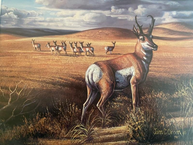 Frame John Green print of antelopes 20" X 27"