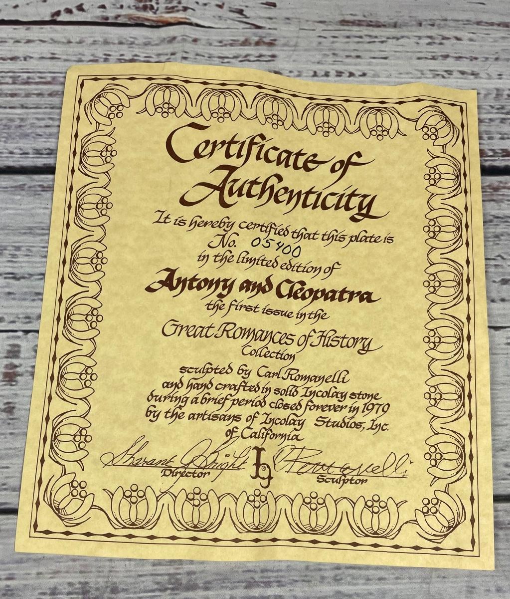 Anthony and Cleopatra Limited Edition Handcrafted Incolay Plate